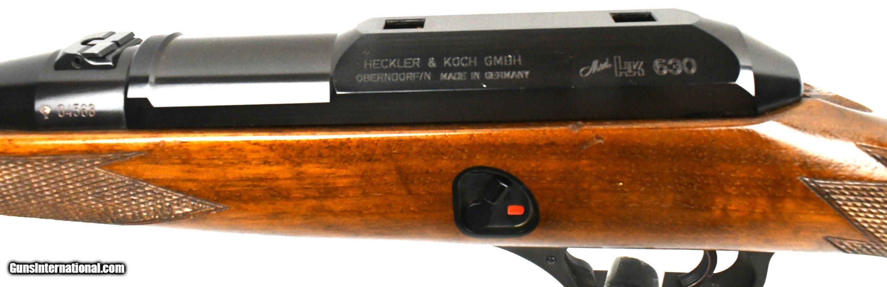 Description: Heckler & Koch, H & K, Model HK 630, .223 Rem., 19.5” Barrel Including Factory Muzzle Brake / Flash Hider, Folding Leaf Rear Sight, Adjustable Front Sight, Checkered Pistol Grip Stock, Cheek Piece, Figured Wood, Quick Detachable Sling Swivel, White Line Spacers, Plastic Butt Plate, One Magazine, Date Code: KD, Made In Germany, Serial # 04568, Condition: Excellent, with scattered scratches and dings, Bore: Bright.*******************************************23110431/19***************************************************Free Shipping*********************Layaway Available************************Trades Considered*******************FIREARMS MAY HAVE FOREIGN PROOF AND IMPORT MARKS******* If you are the winning , you will receive payment instructions in a confirmation email • Payment: We accept United State Postal Service Money Orders or Credit Cards Add 3.5% Service Fee- Visa, MasterCard & Discover.