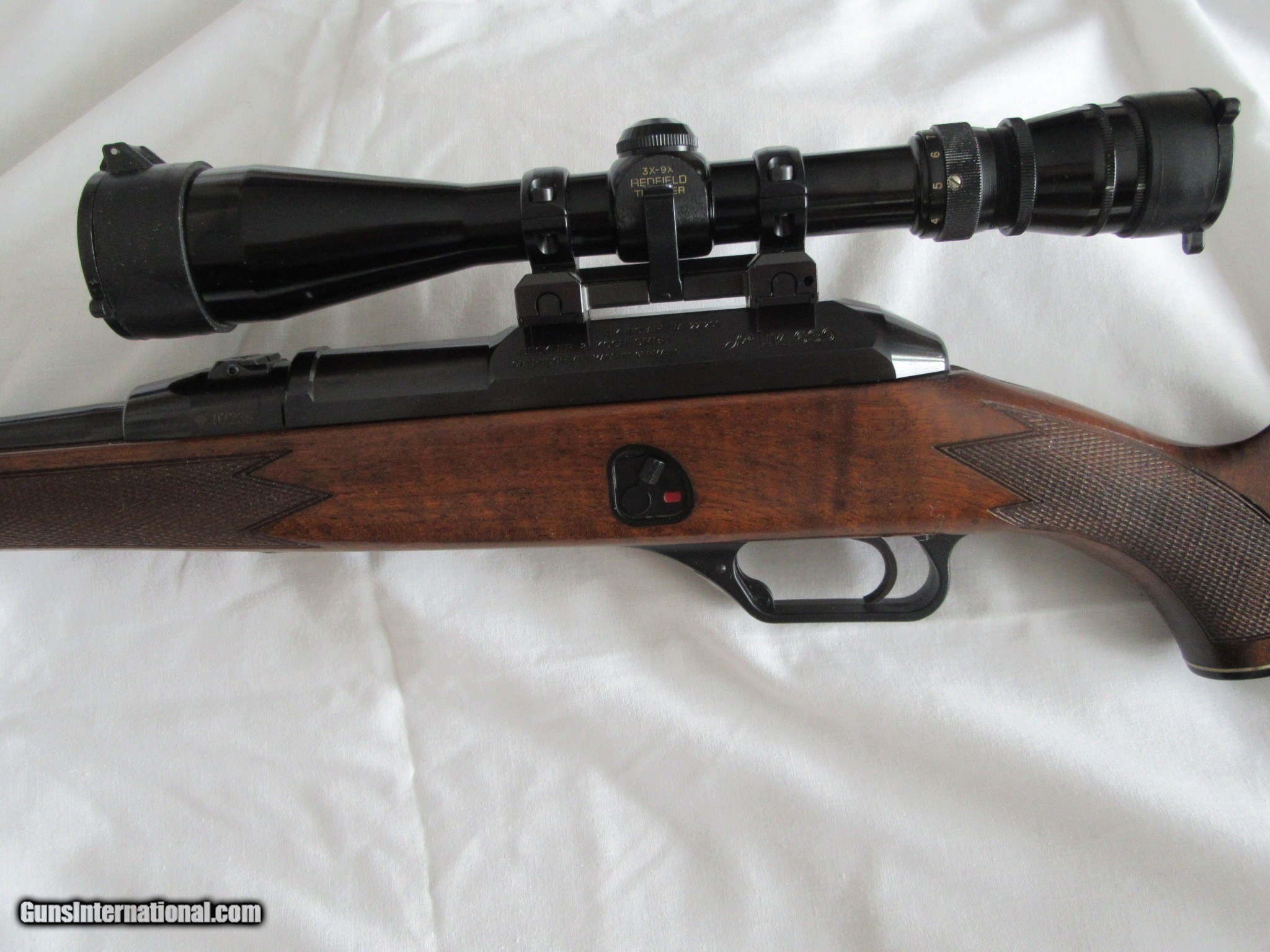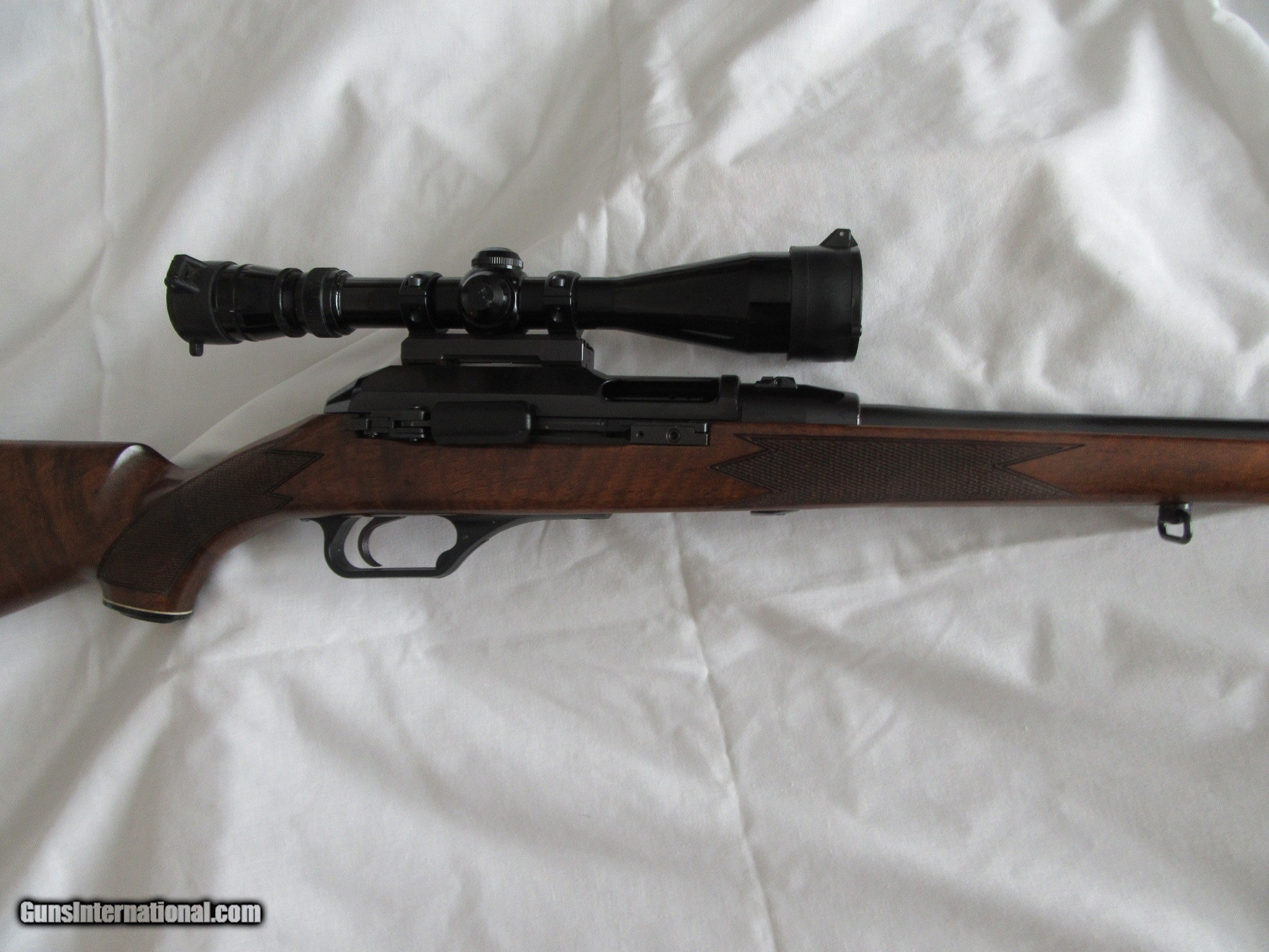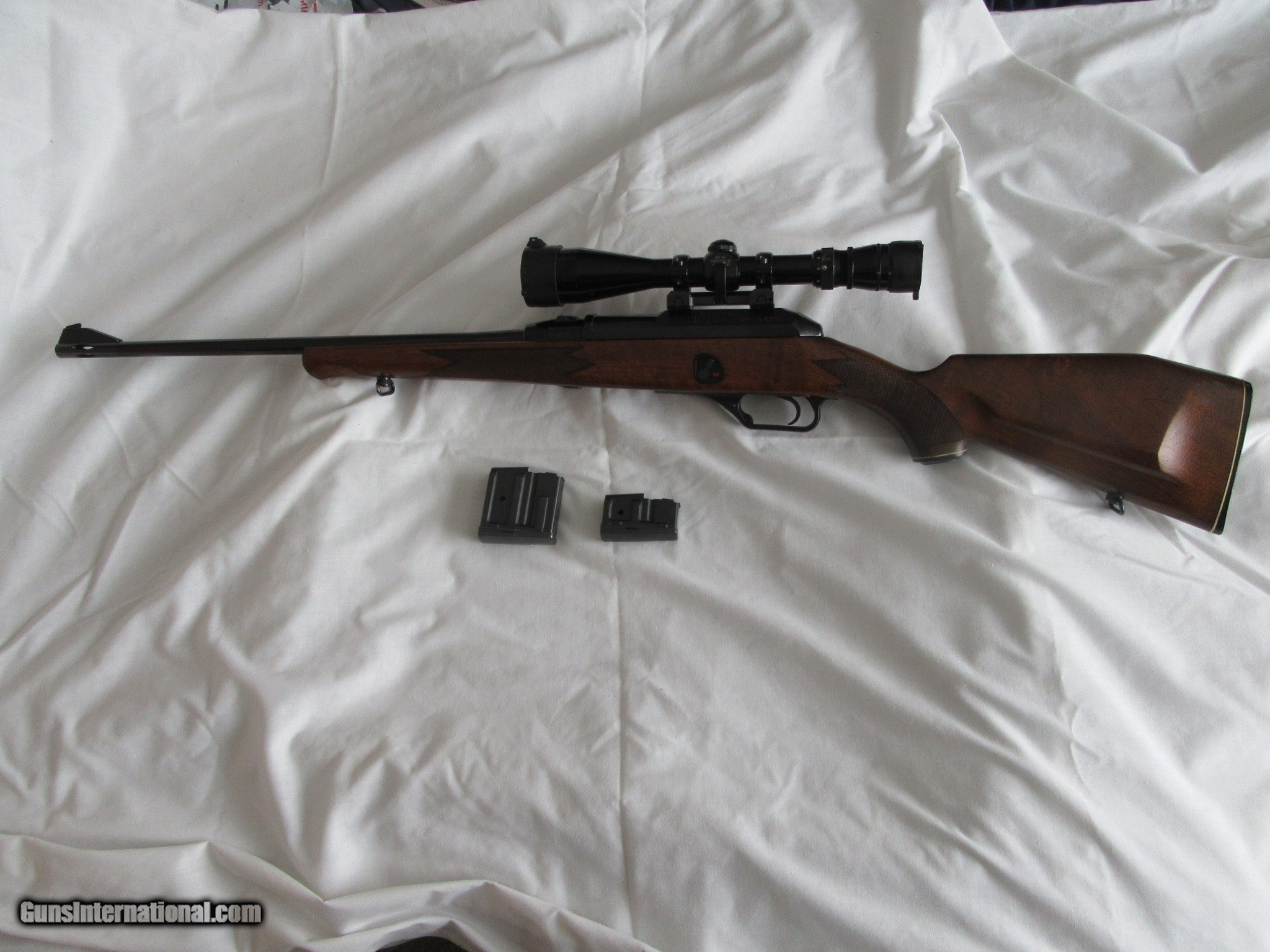 Description: H&K 630 .223 rifle. 100% Completely original not refinished. H&K Q5 scope mount with 4 round clip. Scope not included. 17.7'' barrel, factory flash suppressor, European checkered walnut stock, has cheekpiece, pistol grip cap, quick detach sling swivel attachment points, and original butt plate. Condition: 98% stock & blueing. One extra 10 round clip $250.00 with gun purchase. $2300.00 + S&H SOLD |