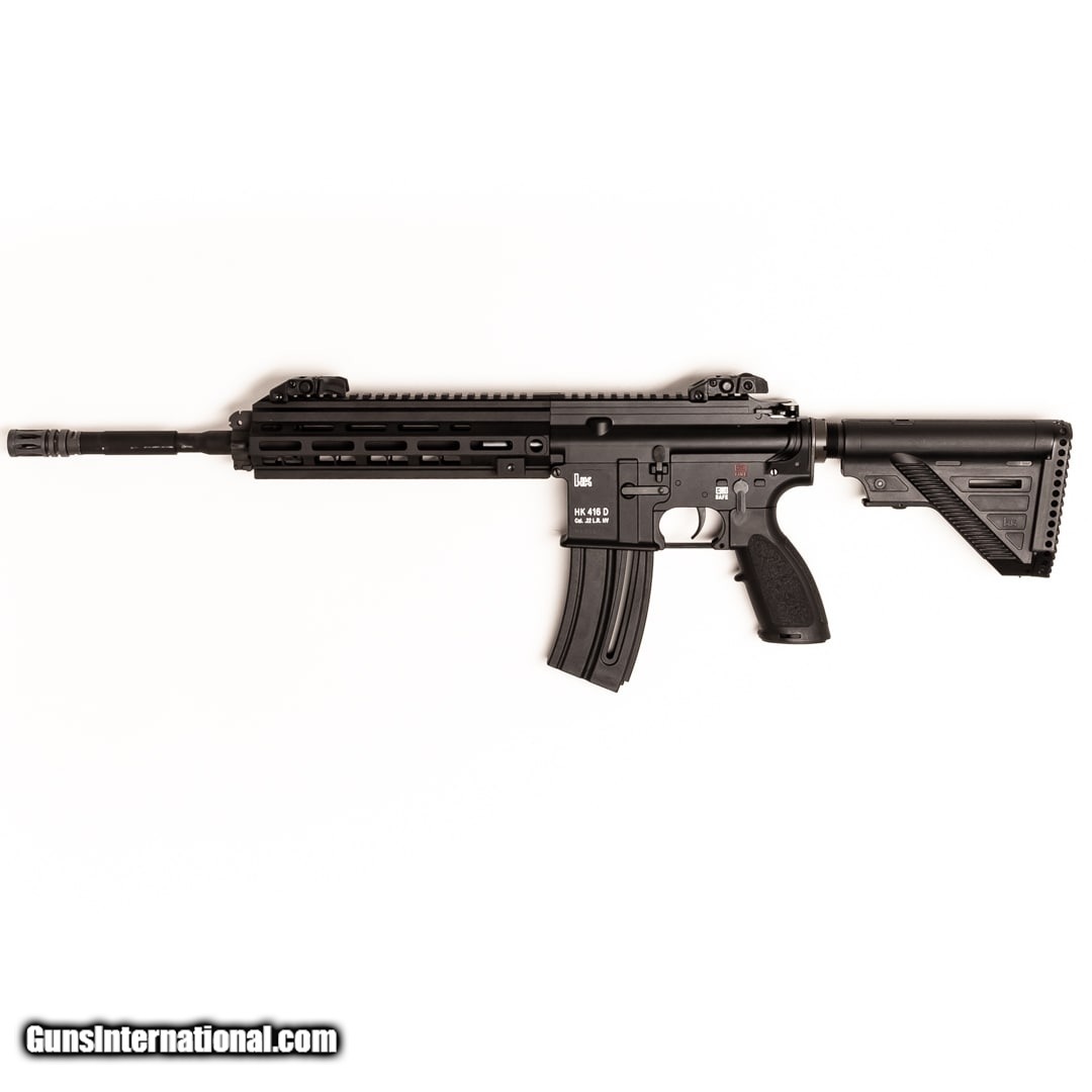 Description: Guns Listing ID: 563108 For sale is an H&K 416 D rimfire rifle. This will make an excellent plinker, training tool, and range gun. This 416 D has flip-up sights and includes the owner‚‚s manual and one 20-round magazine. SOLD Manufacturer: H&K Model: HK 416 D Caliber Info: .22 LR Condition: Used - Certified Barrels: 16.1 BARREL Finish: BLACK |