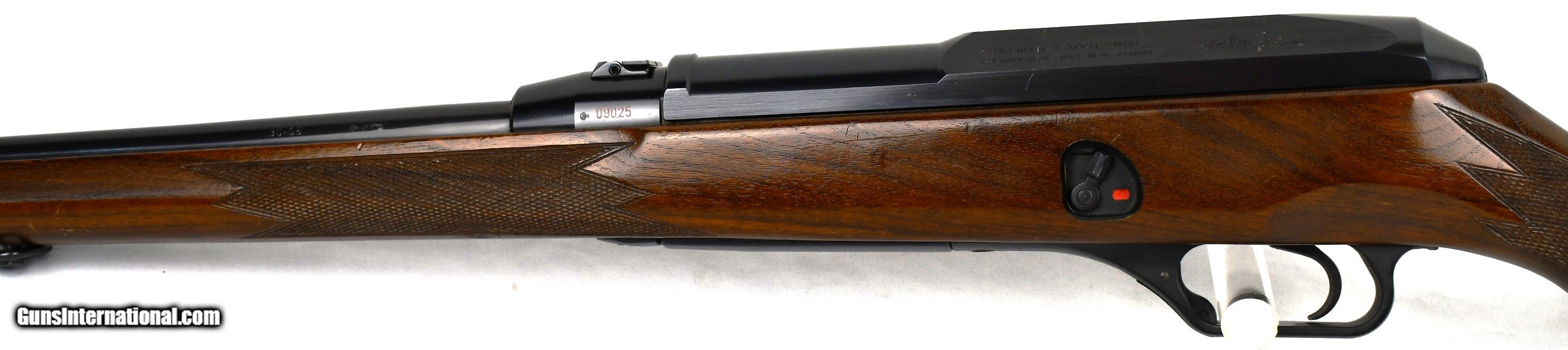 Description: Heckler & Koch, Model Hk 940, Carbine, 30-’06, 17.5” Barrel, Conventional Rifling, Folding Rear Sight, Checkered Pistol Grip Stock, Figured Wood, Push Button Release Sling Swivels, Ventilated Recoil Pad, One Magazine, Mfg. Approx. 1989, Made In Germany, Serial # 09025, Condition: Excellent, with scattered scratches, area of discoloration on barrel just forward of receiver, Bore: Bright *****************************************18090023/19*******************************************Free Shipping*********************Layaway Available************************Trades Considered*******************FIREARMS MAY HAVE FOREIGN PROOF AND IMPORT MARKS******* If you are the winning , you will receive payment instructions in a confirmation email • Payment: We accept United State Postal Service Money Orders or Credit Cards Add 3.5% Service Fee- Visa, MasterCard & Discover.