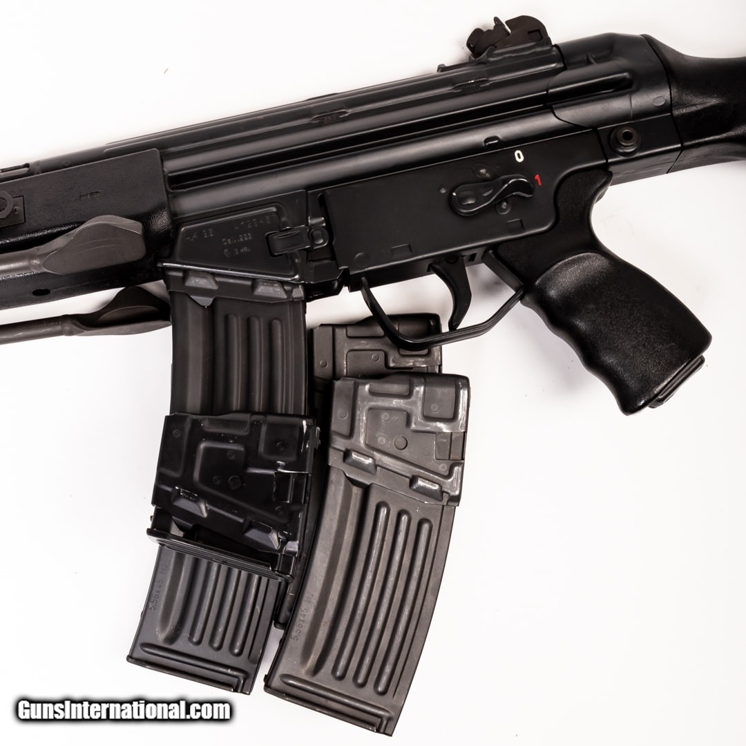Description: Guns Listing ID: 463571 A collectible and scarce delayed roller blowback rifle, the Heckler & Koch HK 93 is a phenomenal addition to your collection. This iconic rifle is patterned off the HK 33, which was developed in West Germany during the 1960s and saw combat in a variety of conflicts. It is still even used by some countries present day. This HK 93 has a bi-pod and includes one 10-round magazine and four 25-round magazines. SOLD Manufacturer: H&K Model: HK93 Caliber Info: 5.56X45MM NATO Condition: Used - Certified Barrels: 16.5 BARREL Finish: BLACK |