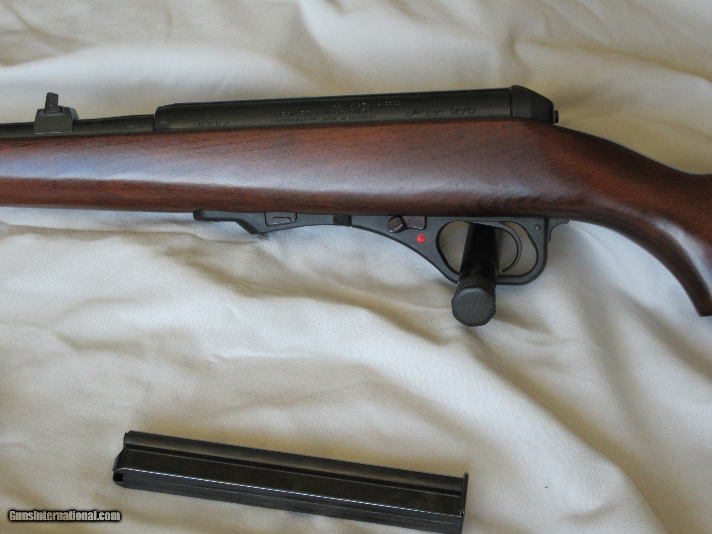 Description: H&K Model 270 .22 semi-automatic rifle. 100% Completely original not refinished. Condition: 99% stock and blueing, with 5 & 20 round clip. HK 270, .22LR, 19 5/8” Barrel. Regular Sight & Grooved scope base Extra clips (5 or 20 round) available for purchase with gun. SOLD |