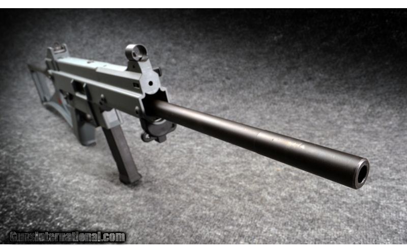 Description: Heckler & Koch's civilian version of the UMP, named the USC, is a simple, direct blowback .45 caliber rifle that's surprisingly lightweight. At only a little over 6 pounds, this Universal Self-loading Carbine is cool gray in color, and is equipped with a front night sight and 2 magazines. It's in very good condition with light marks across the surface of the barrel. The polymer of the gun is great and the bore is in excellent condition. A great shooting, lightweight rifle that is loads of fun on the range. SOLD Caliber Info: .45 ACP Chambers: Semi-auto Metal Condition: Very Good- light marks across barrel Bore Condition: Excellent- clean, sharp rifling Barrels: 16 inch Triggers: ~8 lb Stock: H&K thumbhole stock Stock Dimensions: 14.25 inch LOP Butt Pad: H&K factory rubber pad Weight: 6 lb, 3 oz Sights: H&K hooded front night sight, adjustable dual aperture rear Extras: Owner's manual, 2 magazines (total) Item Location: Gainesville, VA |