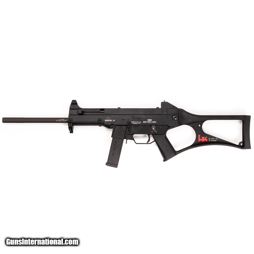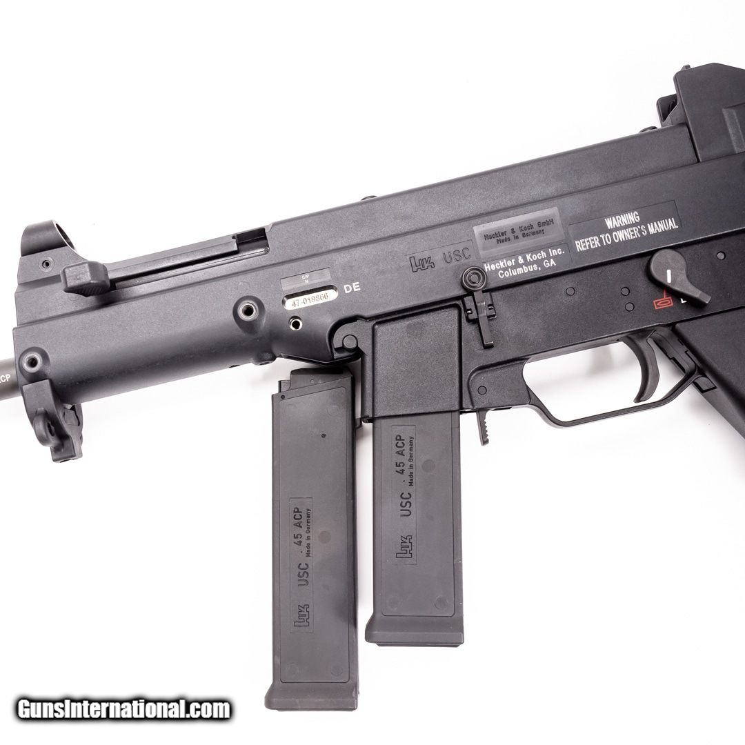 Description: Guns Listing ID: 344069 A pistol caliber carbine originating from the HK UMP submachine gun, this Heckler & Koch USC is chambered in 45 ACP. It utilizes a simple and ultra-reliable blowback operating system, sports a skeletonized buttstock, and is a great choice for recreational use, target shooting, and self-defense. This USC is in very good condition and includes the original tactical soft case, owner's manual, and two 20-round magazines. SOLD Manufacturer: H&K Model: USC Caliber Info: .45 ACP Condition: Used - Certified Barrels: 16 BARREL Finish: BLACK |