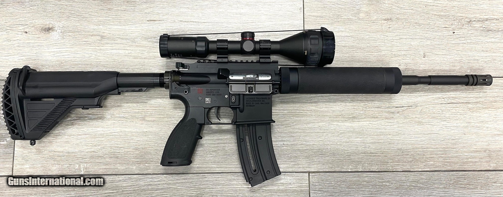 Description: Guns Listing ID: 979417 HK 416 D .22 LR COMES WITH SIMMONS 4-12X50 A/0 PRO SPORT SCOPE SOLD Manufacturer: HECKLER & KOCH Model: 416 D Caliber Info: .22 LR Condition: Used - Non-Certified Barrels: 16 BARREL Finish: BLACK |