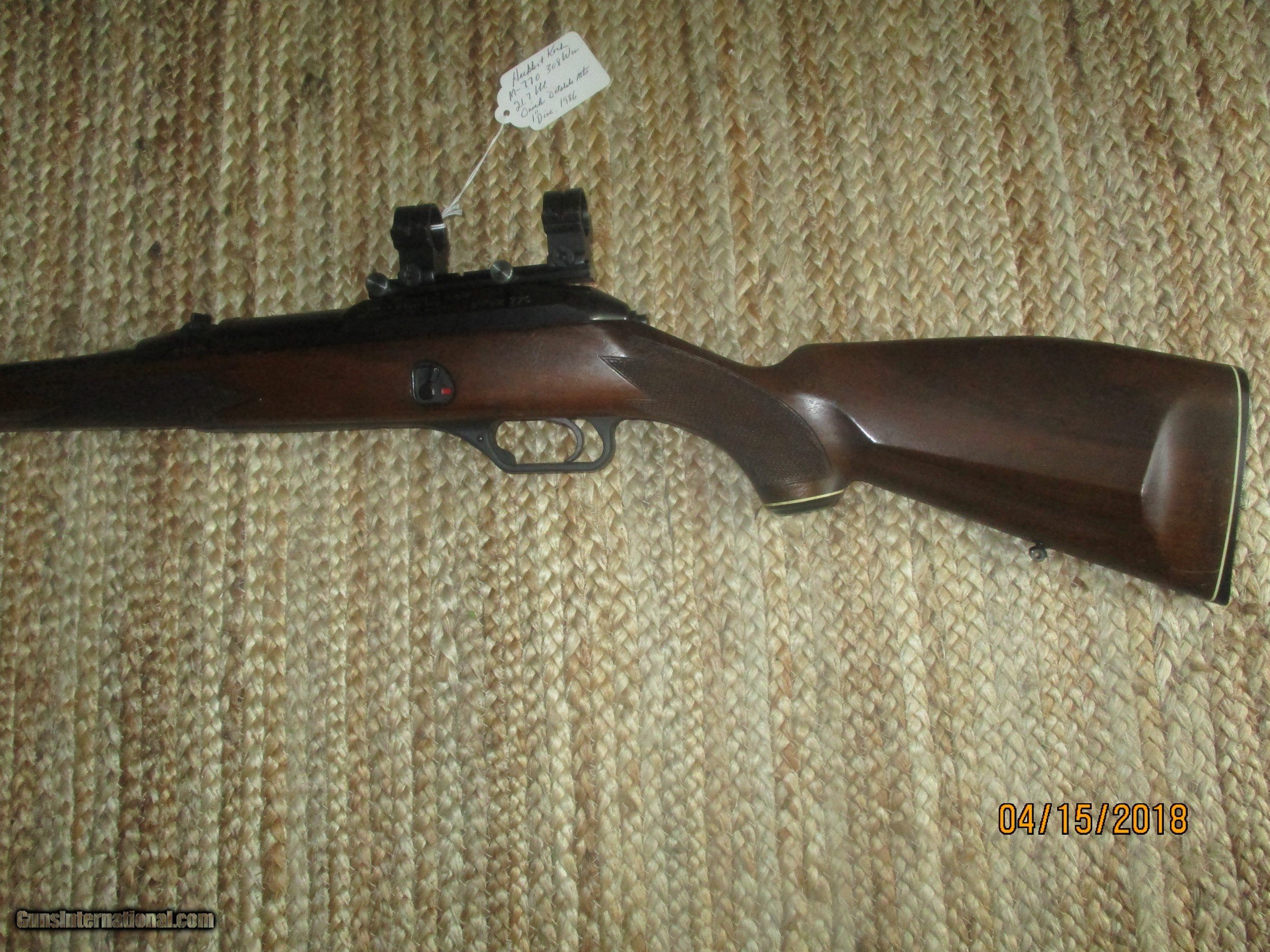 Description: 21.7" plain bbl., 98% OA blue, fancy ck. walnut stock with some minor carry use, HK sling studs, European cheelpiece: SOLD |