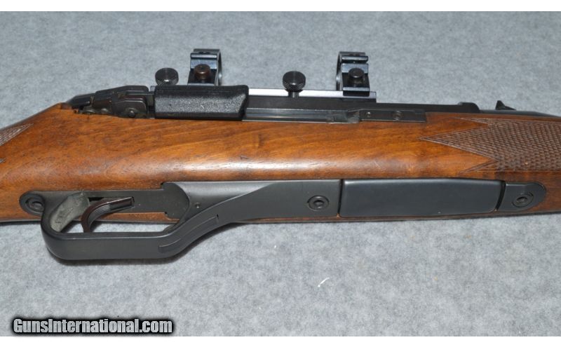 Description: This Heckler & Koch 770 is in great condition with a 22 1/2 inch blue round barrel that has a very clean bright bore. The stock is in very good condition with some very minor field marks on the right side of the stock and right side of fore arm. The metal is also in very good condition with some field mark on the top of the barrel. Over all this is very good looking rifle that would be a great for hunting big game. It comes with scope ring, bases and one magazine. SOLD Caliber Info: .308 WIN. Chambers: Semi auto. Metal Condition: Very good. Wood Condition: Very good. Bore Condition: Clean and bright. Barrels: 22 1/2 inch blue round barrel. Triggers: Single blue trigger. Stock: Walnut stock with raised cheek rest, sling studs, black rubber grip plate and checkering on the pistol grip. Stock Dimensions: 13 3/4 inch LOP. Fore End: Matching fore end with checkering and sling stud. Butt Pad: Black rubber butt plate. Weight: 8 Lbs. 8 Oz's. Sights: Scope rings and bases. Extras: Comes with scope rings, bases and one magazine. Item Location: Sun Prairie, WI |