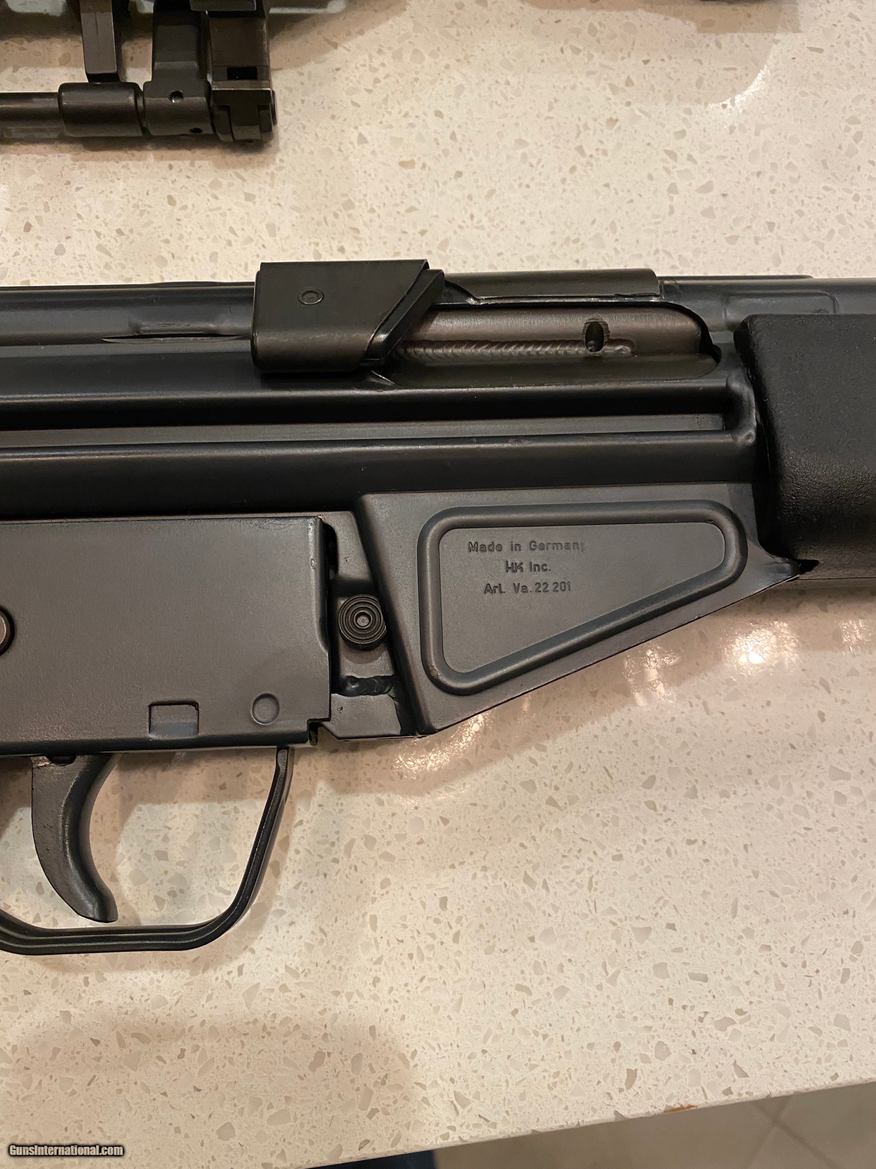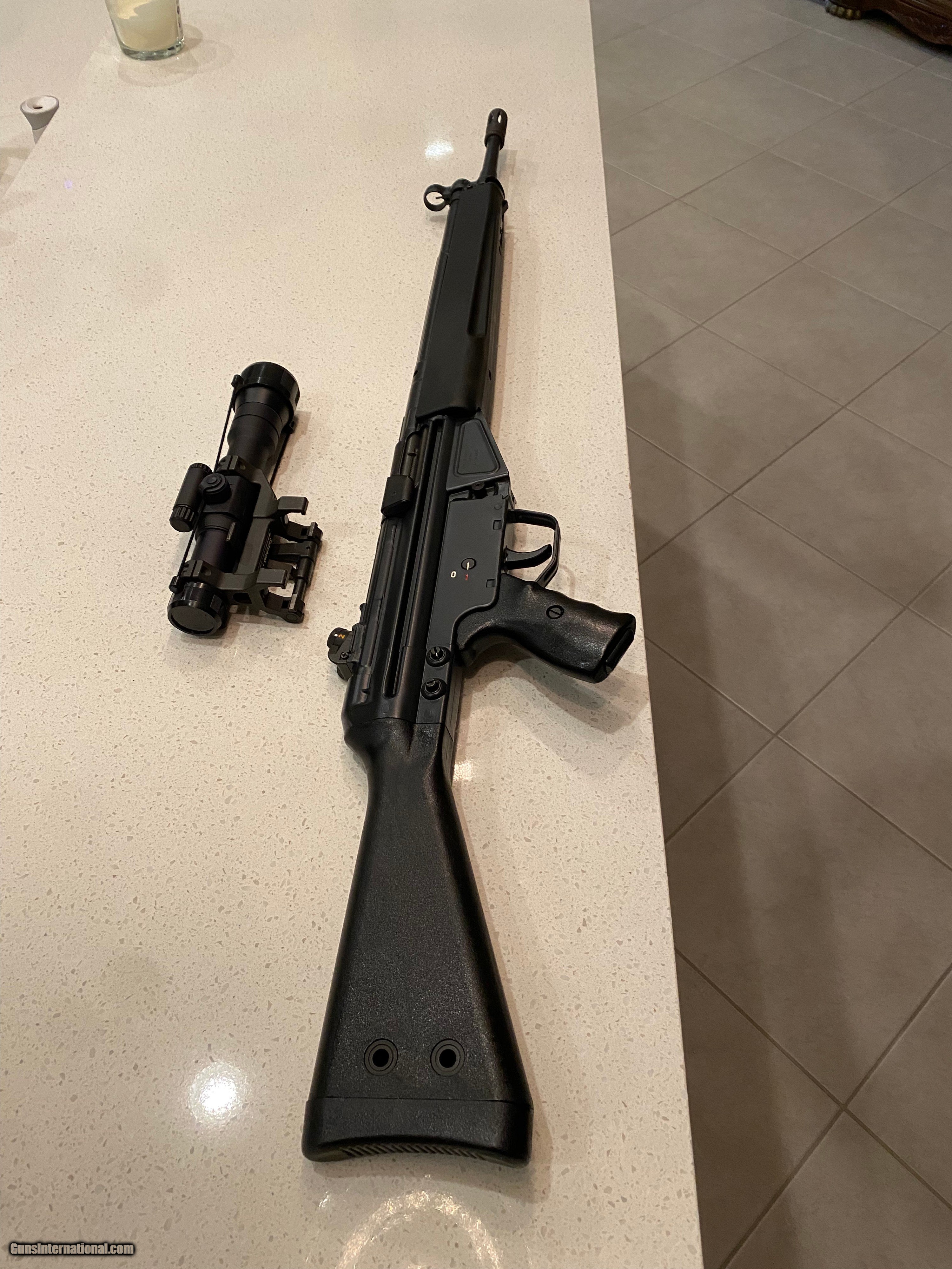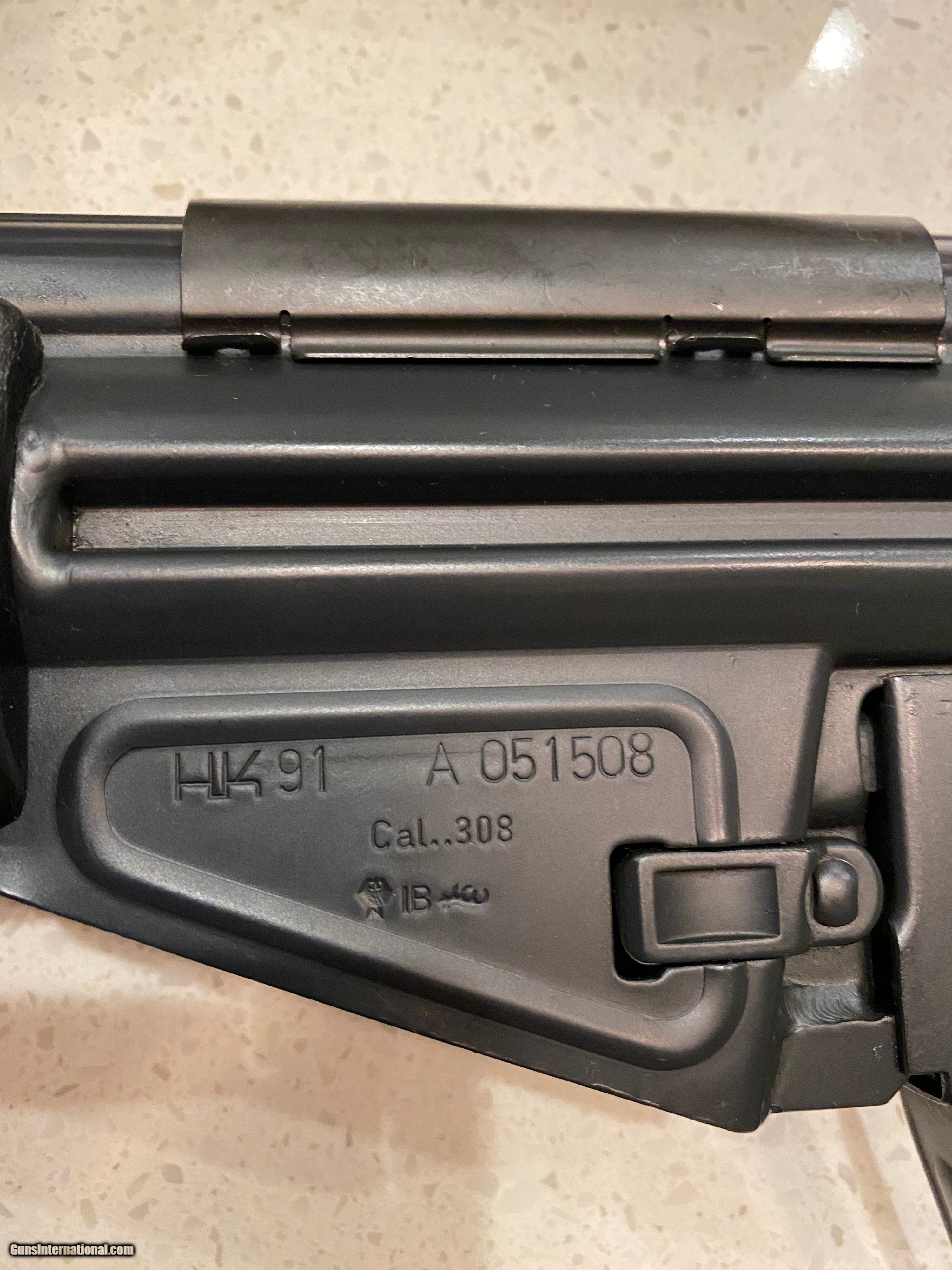 Description: this is a highly collectible rifle in perfect condition with two magazines and a scope mount. I have an aim point scope too which is optional. This rifle has been in the family since bought new. SOLD Rifle Caliber: .308 Winchester Manufacturer: HK Model: 91 Serial Number: A 051508 Condition: Excellant Metal Condition: Excellant Wood Condition: Excellant Bore Condition: Excellant |