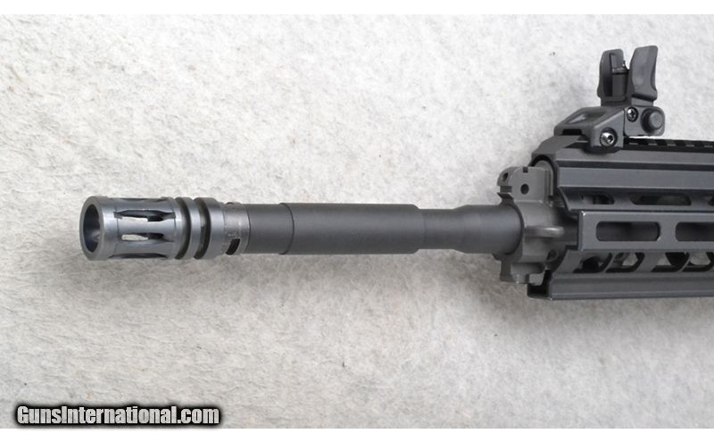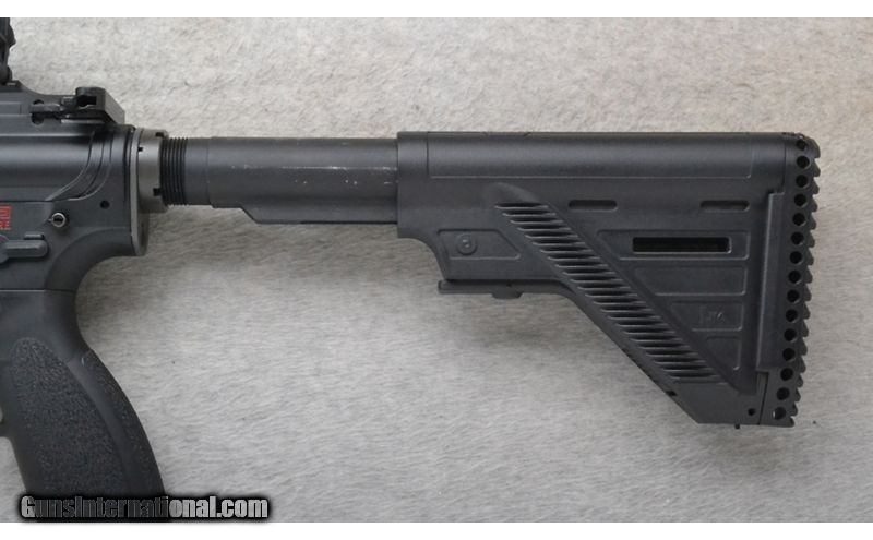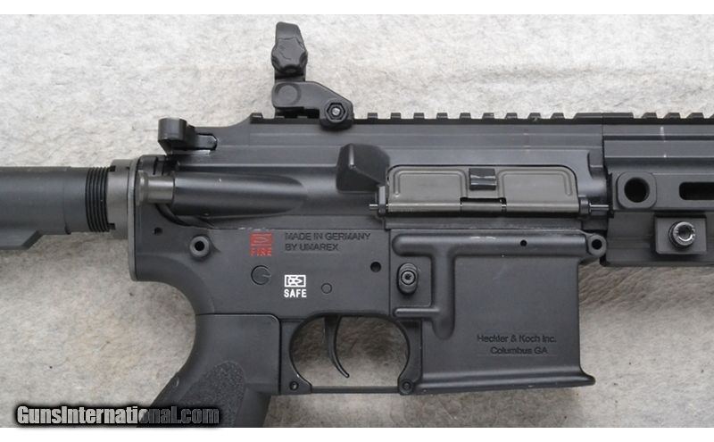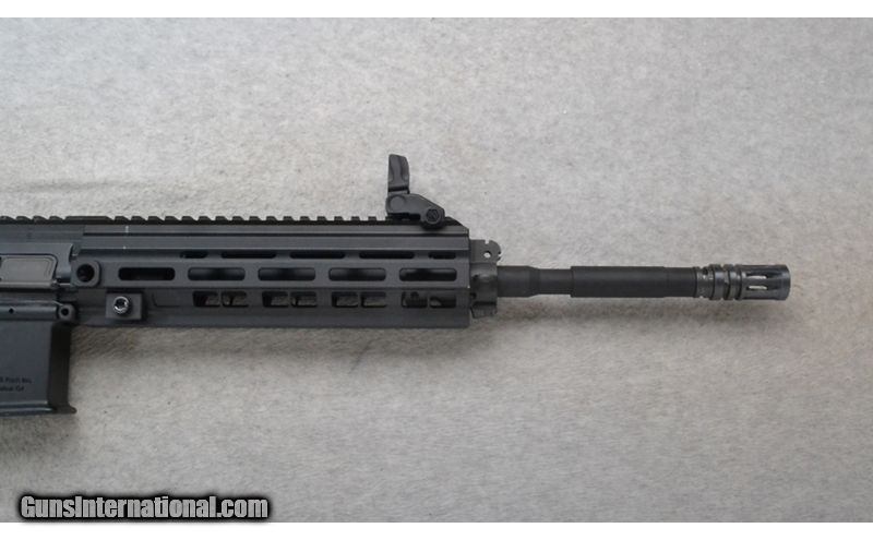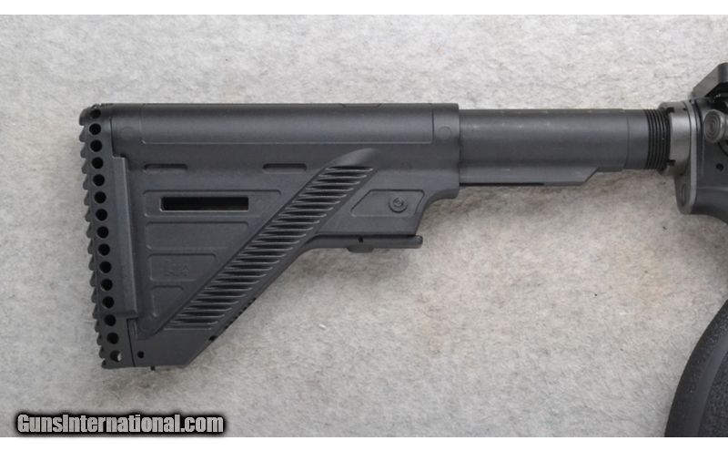 Description: This Heckler & Koch Model HK 416 D is a right hand semi-auto rifle in .22 LR HV Cal. It has a 16 inch barrel plus a muzzle device. Adjustable flip up front and rear sights. The butt stock is adjustable/telescoping. It has a textured grip black polymer full pistol grip. The forearm is a vented alloy tube. .22 Long Rifle SOLD Chambers: Detachable magazine. Metal Condition: Excellent. A few minor handling marks. Bore Condition: Excellent. Barrels: 16 inch barrel plus a muzzle device. Stock Dimensions: LOP 14 3/8 inches. Fore End: vented alloy tube. Butt Pad: Ribbed black polymer. Weight: 5 Lb. 8 Oz. Sights: Adjustable flip up front and rear. Item Location: Richfield, WI |