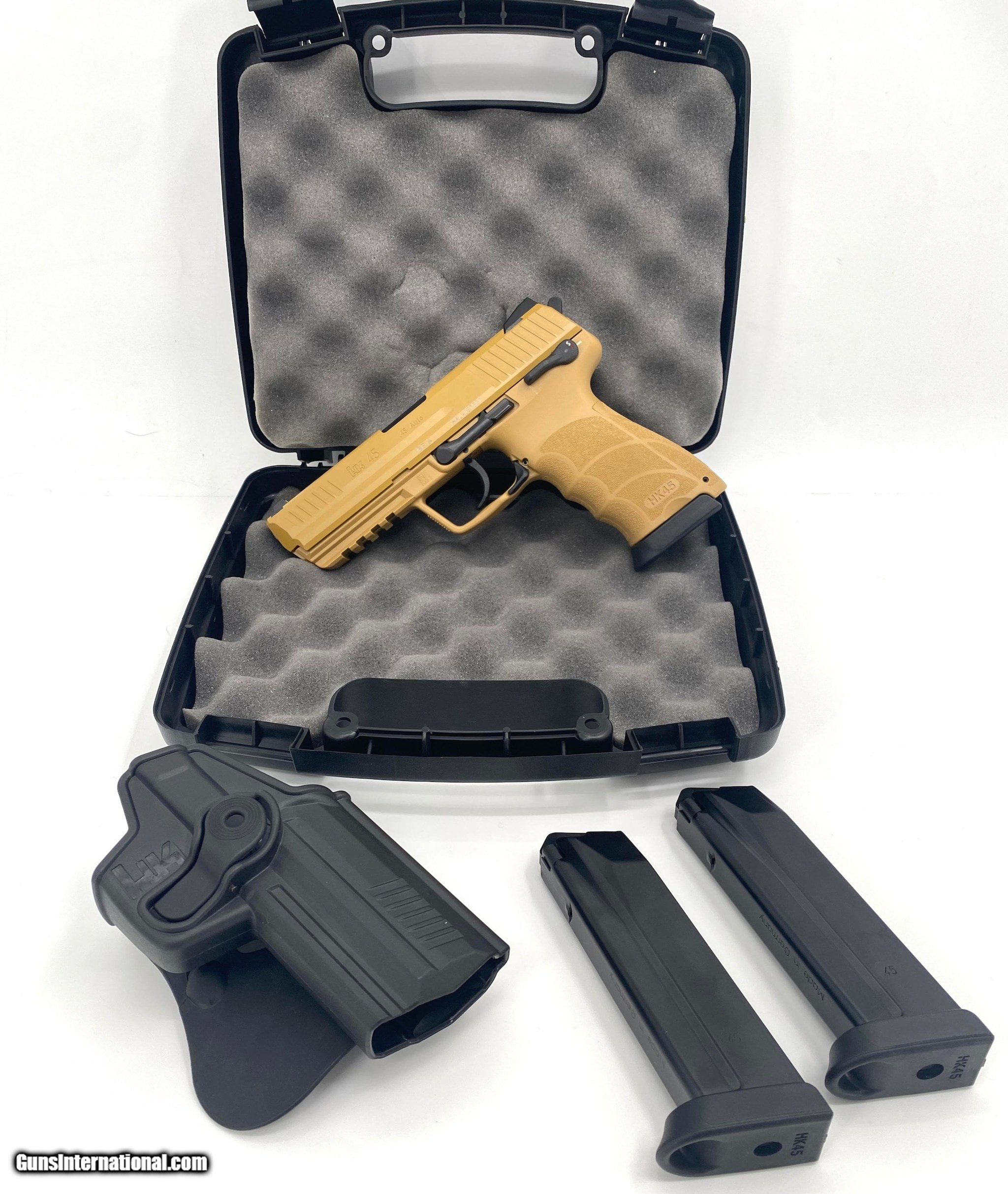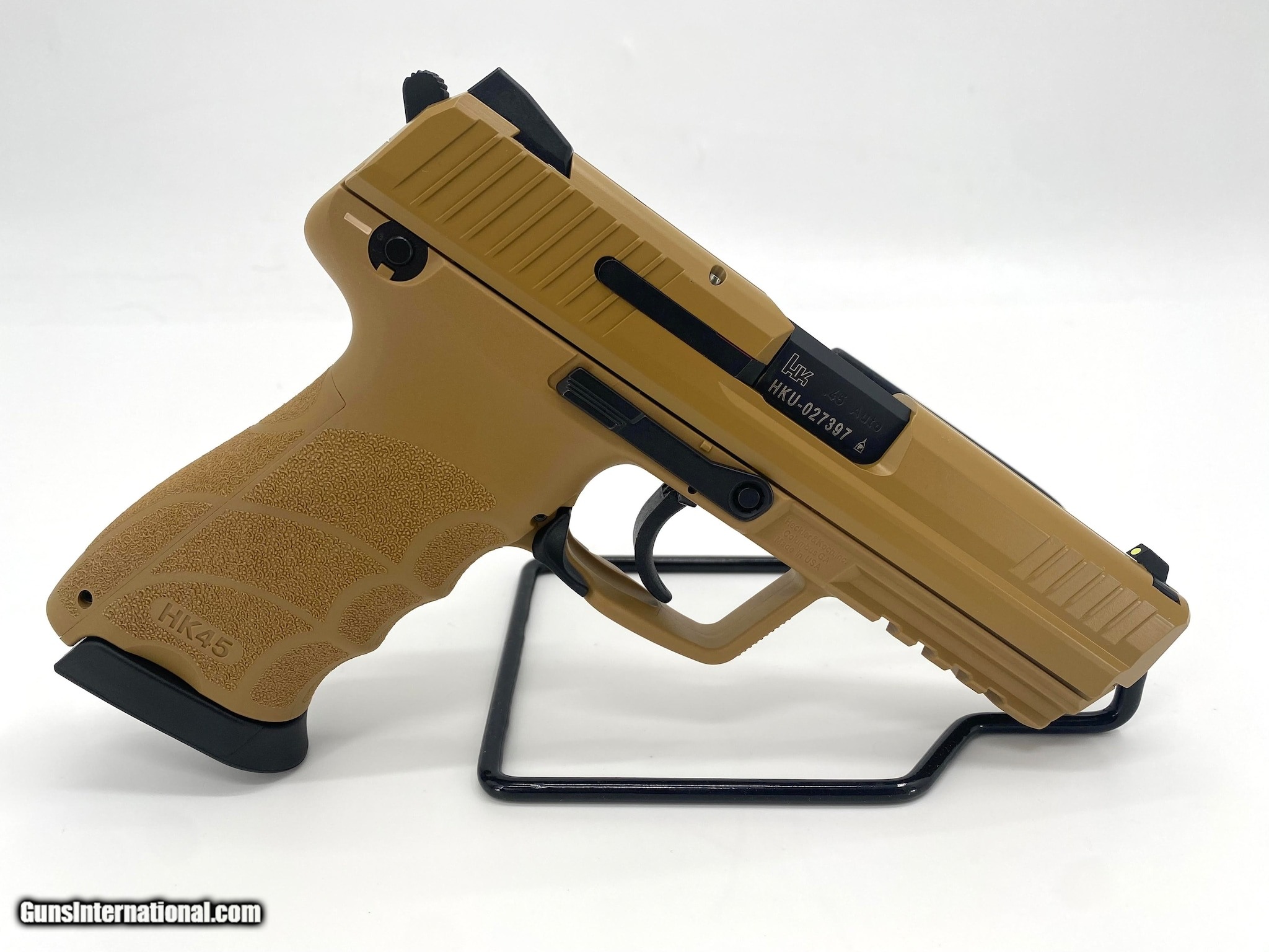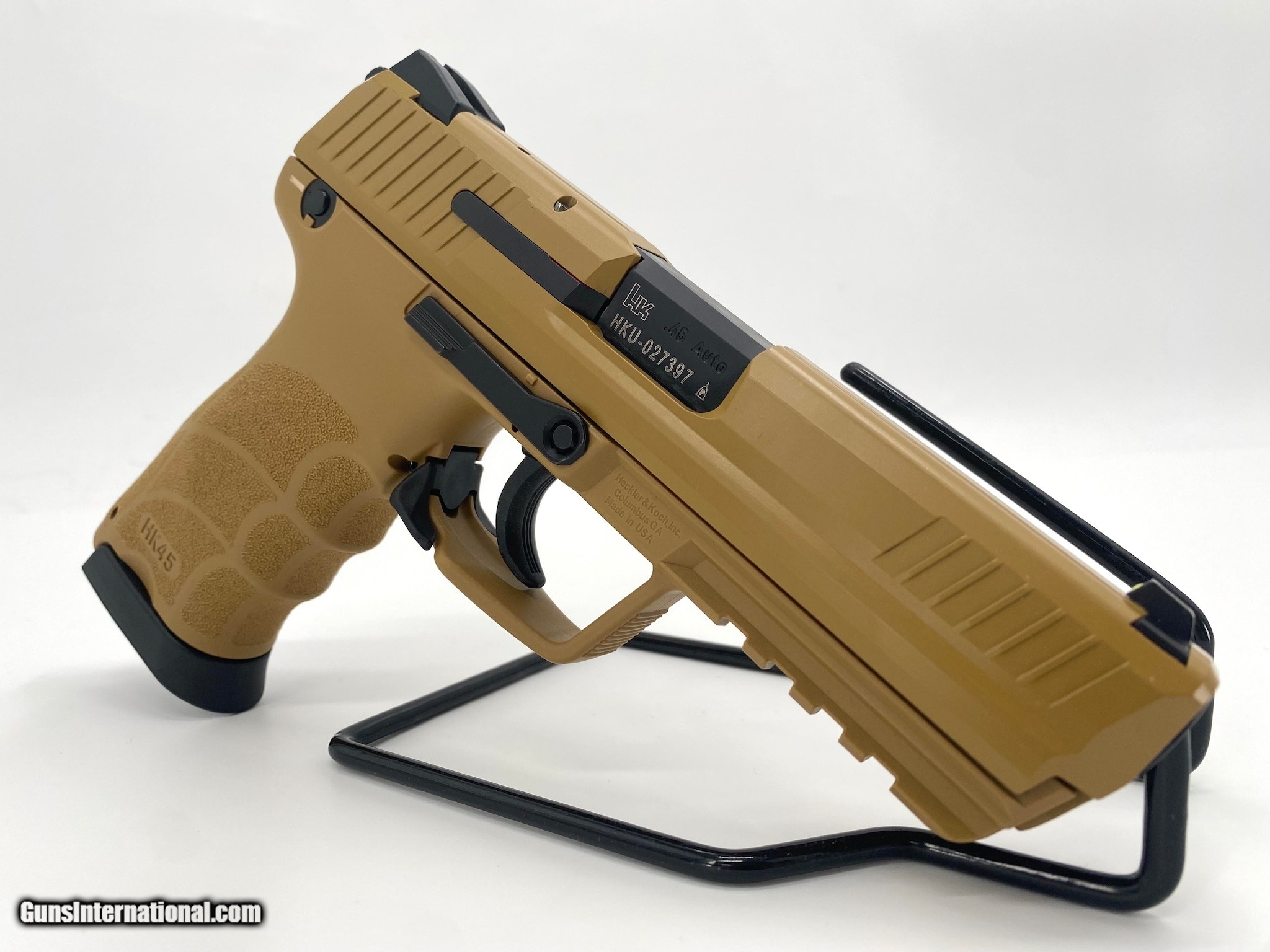 Description: Guns Listing ID: 1076648 H&K HK45 .45ACP limited \"sand\" color with box, holster and x3 magazines SOLD Manufacturer: HECKLER & KOCH Model: HK45 Caliber Info: .45 ACP Condition: Used - Non-Certified Barrels: 4.5 BARREL Finish: BROWN |