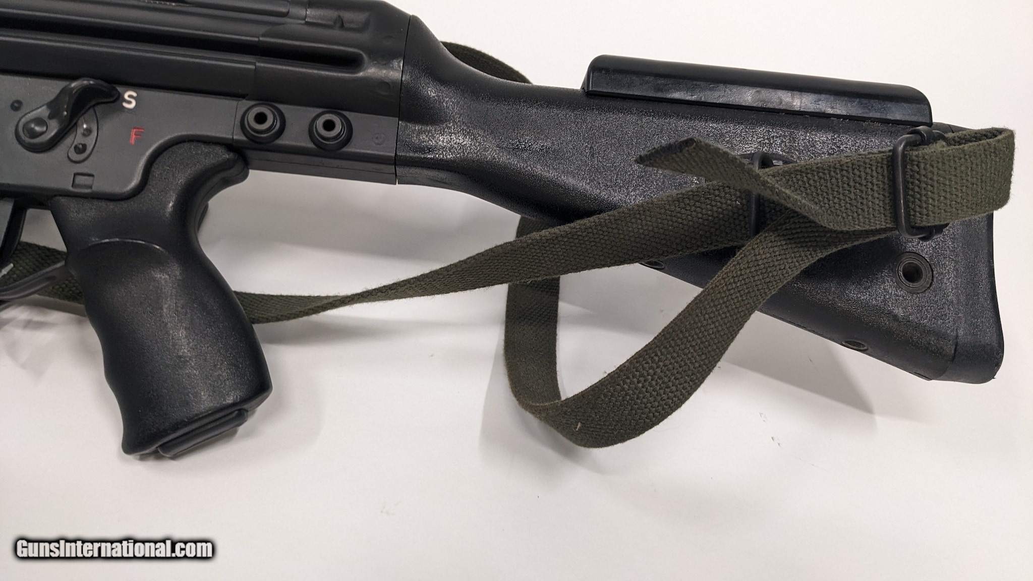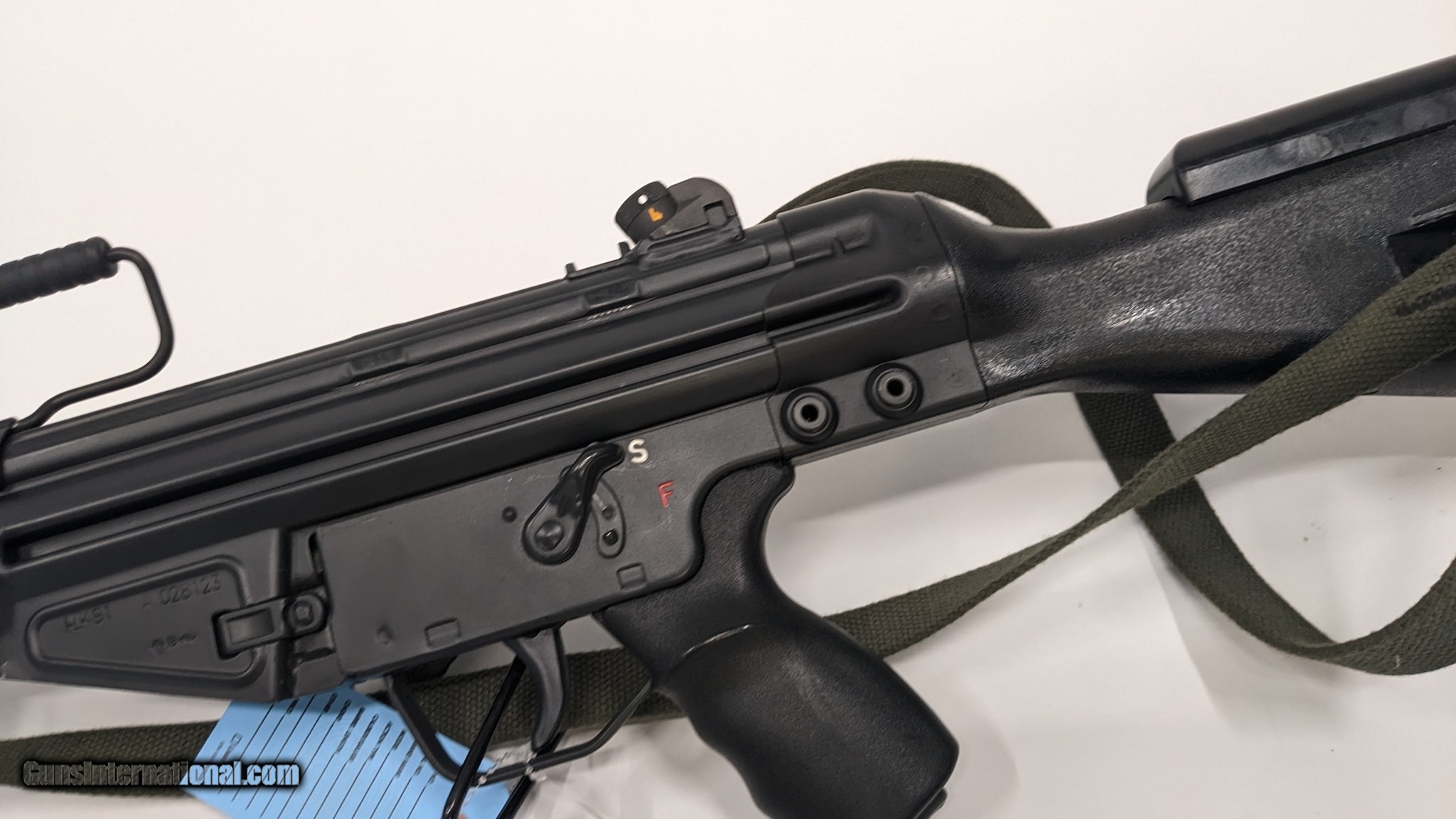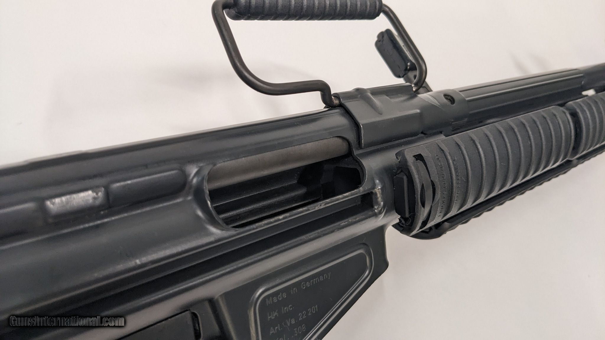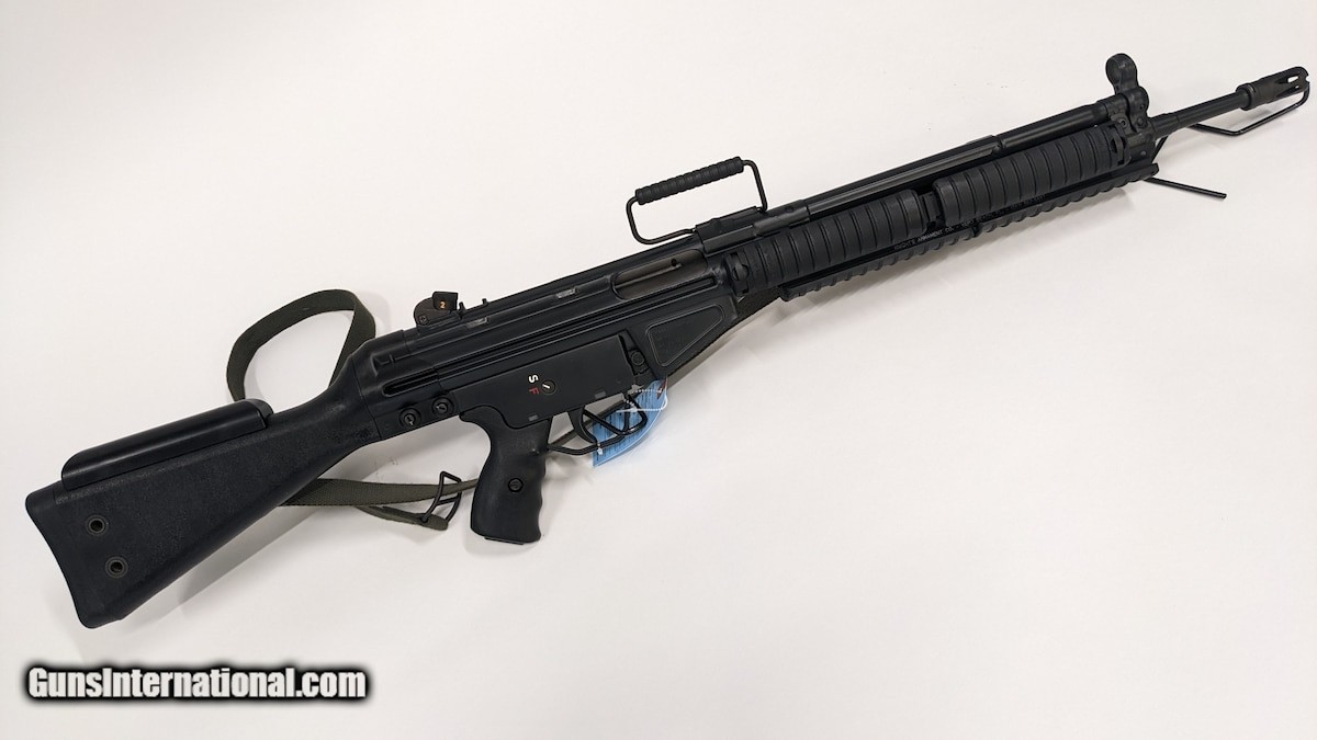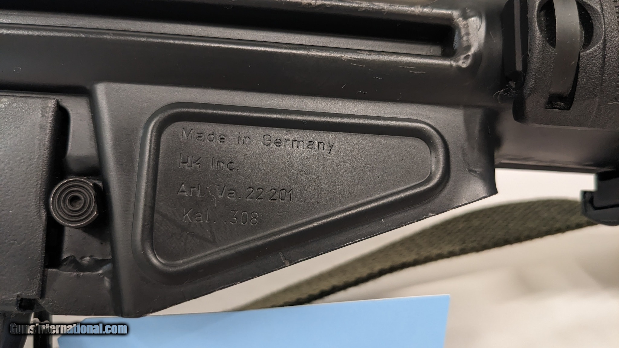 Description: Guns Listing ID: 849748 DESCRIPTION Extremely rare H&K HK91 Pre-Ban import Circa 1981. Includes original H&K tactical sling and $500.00 Knights Armament upgraded hand guard. Comes with (2) 20-Round Magazines. This is in VERY GOOD to EXCELLENT condition. It shows very light use of firing, as you can see from the images. SPECIFICATIONS Manufacturer: H&K MFG P/N: HK91 Year of Production: 1981 Caliber: 7.62NATO Grips: Knights Armament Upgraded Handguard Sights: Ghost Ring Diopter Sight Action: Semi Auto Roller-Delayed Blowback Barrel Length: 18.5\" Overall Length: 42.5\" Capacity: 20 SOLD Manufacturer: HECKLER & KOCH Model: HK91 Caliber Info: .308 WIN Condition: Used - Non-Certified Barrels: 0.18 BARREL Finish: BLACK |