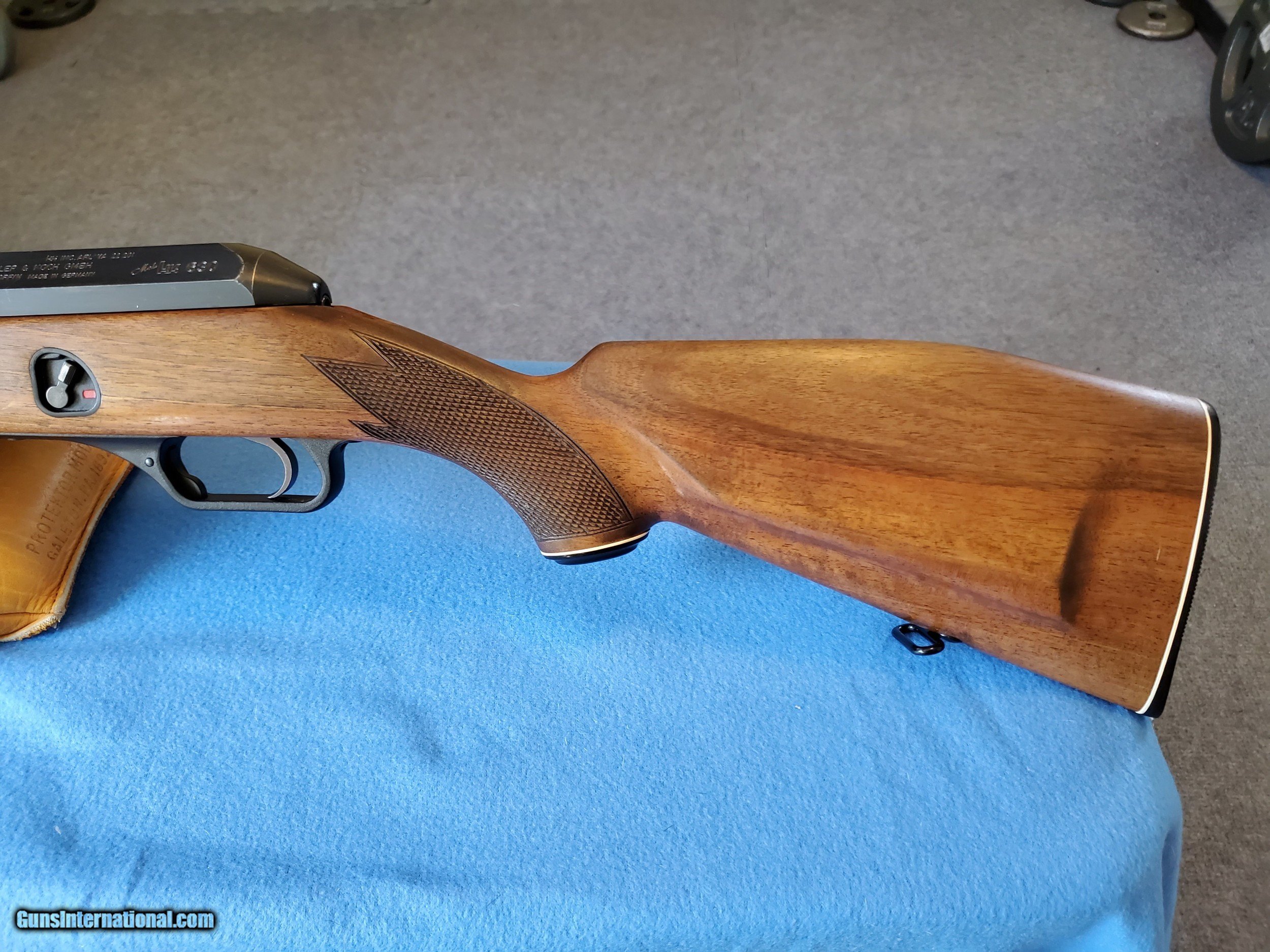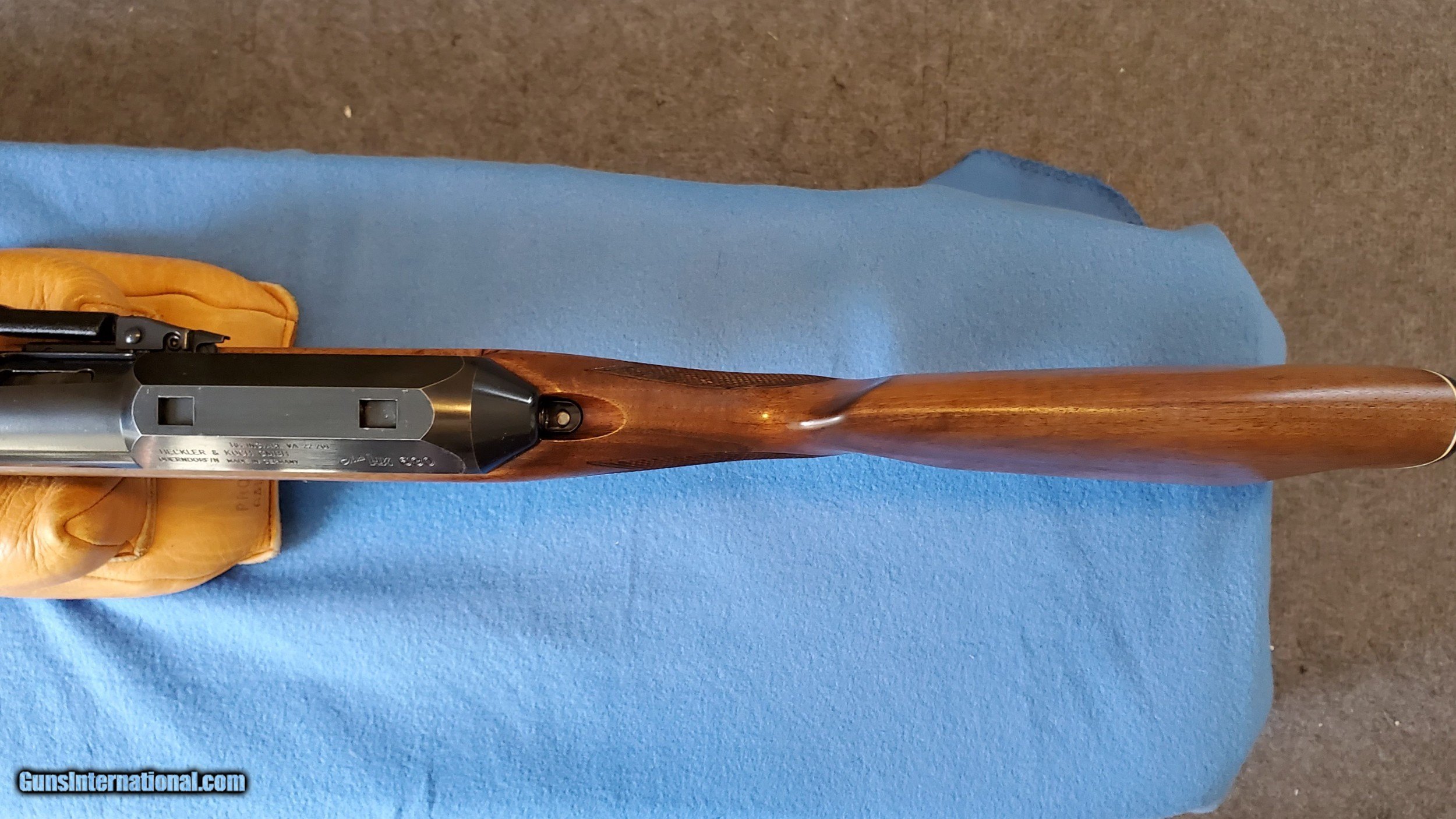 Description: Collector Grade H&K Model 630 semi auto Civilian hunting rifle in .223 caliber with muzzle brake. Wood 99% blue 98%. Bore, Rifling and mechanics are perfect.. Seen very little use. . Comes with one four round factory mag. H & K 05 quick detach scope mount with Leupold 3x-9x varible power duplex cross hair scope is available to rifle purchaser for additional $450. 10 round mags also available at $375 each. shipping to lower 48 is $45. must collect sales tax from Texas purchaser. SOLD Rifle Caliber: .223 Remington Manufacturer: H & K Model: 630 |