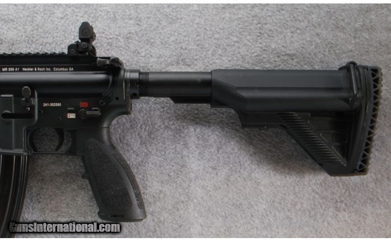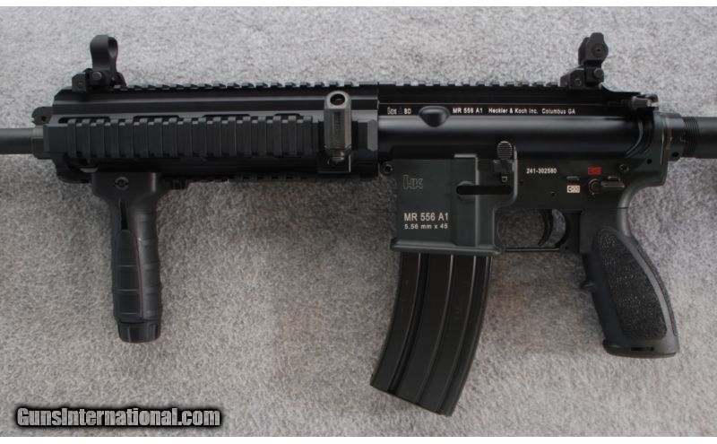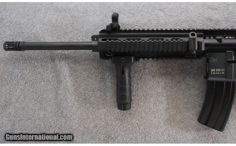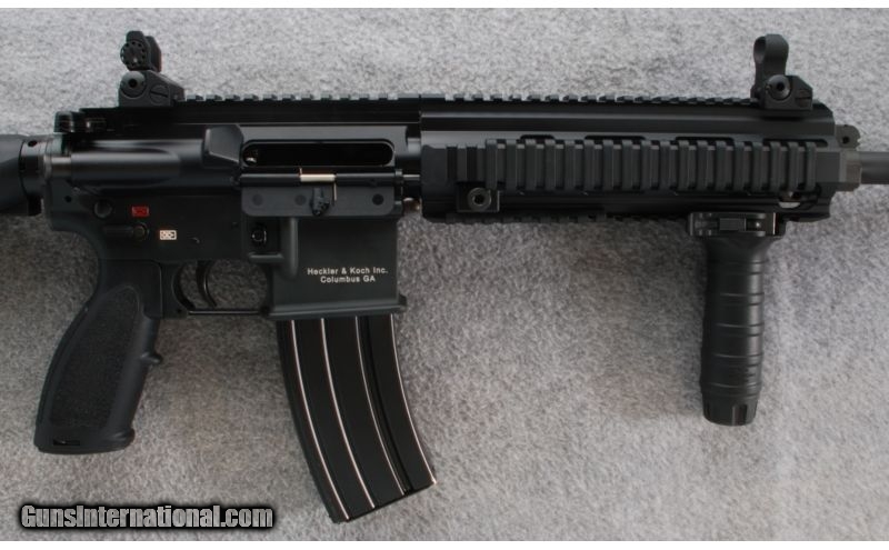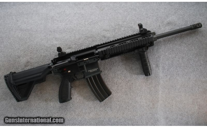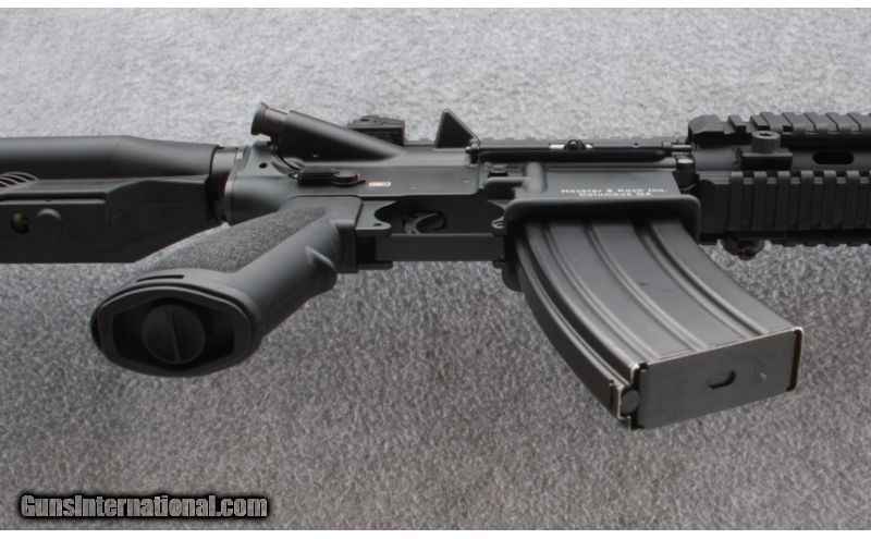 Description: SOLD Caliber Info: 5.56mmX45 (5.56 NATO) Metal Condition: Very Good Wood Condition: Very Good Bore Condition: Bore is excellent Barrels: 16.5" 1-in-7 Rifling Triggers: Factory Stock: Adjustable 6 position stock Fore End: Factory Quad-rail with slot covers Butt Pad: Maker's buttpad Weight: 8 lbs. 8 oz. Sights: Troy flip-up front and rear sights Extras: HK factory soft case and Tangodown quick detach vertical foregrip. Item Location: Gonzales, LA |