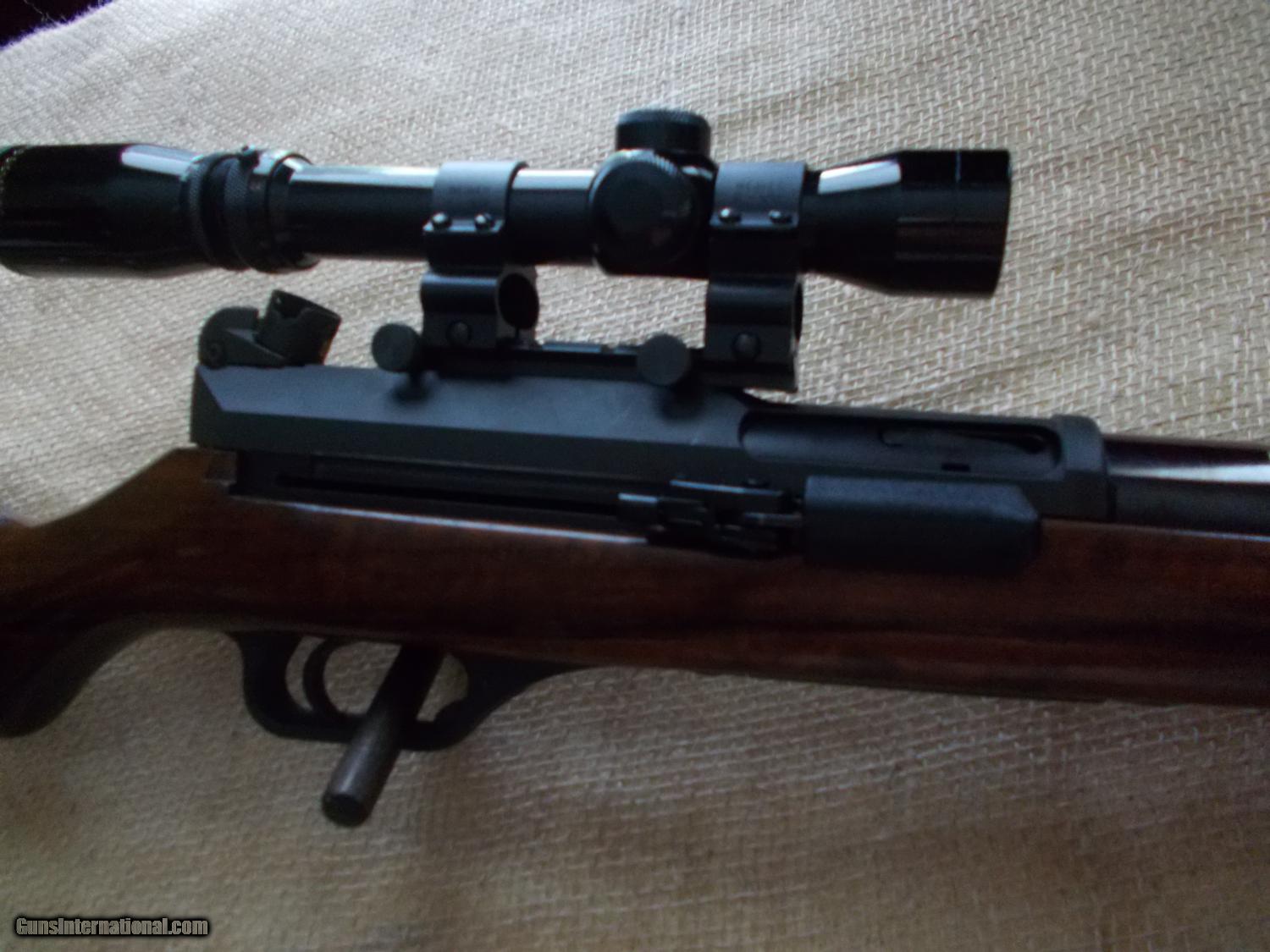Description: semi auto, 17 3/4" bbl.,hooded front st. post sight, 0 x 4 rotary rear, quick detatchable 'B' square base & see thru rings, 1 1/2x X 6x Burrus Signature scope, coil blowback action, vented highly figured European walnit hand guard, matte finish, H&K factory sporting leather sling, fitted soft field case, 100 rounds ammo, factory SL series manual, [Perfect Setup] all for: SOLD |