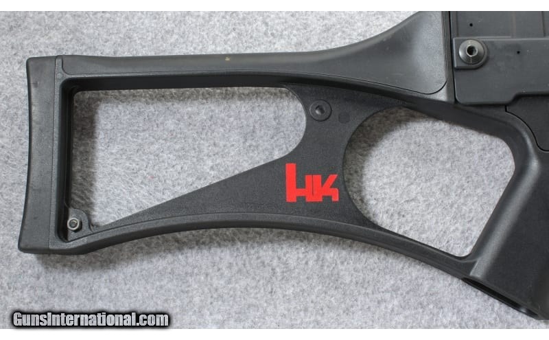 Description: Derived from the HK UMP submachine gun, the USC is a civilian utility carbine that uses the classic hard-hitting .45 ACP cartridge. Matched with a simple and ultra-reliable blowback operating system, the HK USC is a radical departure from traditional firearms designs. Extensive use of the same durable reinforced polymers found on HK's line of military and police arms ensures lightweight and durability. The highest grade of weapons steel is used where it matters; in the cold hammer forged target barrel and the solidly constructed bolt mechanism. User ergonomics are not sacrificed. The skeletonized buttstock is capped with a comfortable rubber cheek rest and recoil pad. Theof the pistol grip is open for a comfortable handhold for a wide range of shooting applications. Manufactured 2021. .45 ACP SOLD Metal Condition: Very good with some scratches Bore Condition: Very good with signs of use Barrels: 16.5 inch barrel Stock Dimensions: 14 1/4 inch LOP Weight: 6 Lbs. 4 Oz. Sights: Aperture rear sight with blade front Item Location: Lehi, UT |