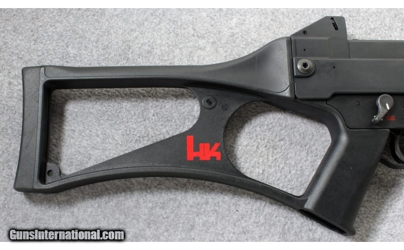 Description: Derived from the HK UMP submachine gun, the USC is a civilian utility carbine that uses the classic hard-hitting .45 ACP cartridge. Matched with a simple and ultra-reliable blowback operating system, the HK USC is a radical departure from traditional firearms designs. Extensive use of the same durable reinforced polymers found on HK's line of military and police arms ensures lightweight and durability. And the highest grade of weapons steel is used where it matters; in the cold hammer forged target barrel and the solidly constructed bolt mechanism. User ergonomics are not sacrificed. The skeletonized buttstock is capped with a comfortable rubber cheek rest and recoil pad. Theof the pistol grip is open for a comfortable handhold for a wide range of shooting applications. Manufactured 2020. .45 ACP SOLD Metal Condition: Excellent with some scratches Bore Condition: Excellent Barrels: 16.5 inch barrel Stock Dimensions: 14 1/4 inch LOP Weight: 6 lbs. 6 oz. Sights: Aperture rear sight with blade front Item Location: Lehi, UT |