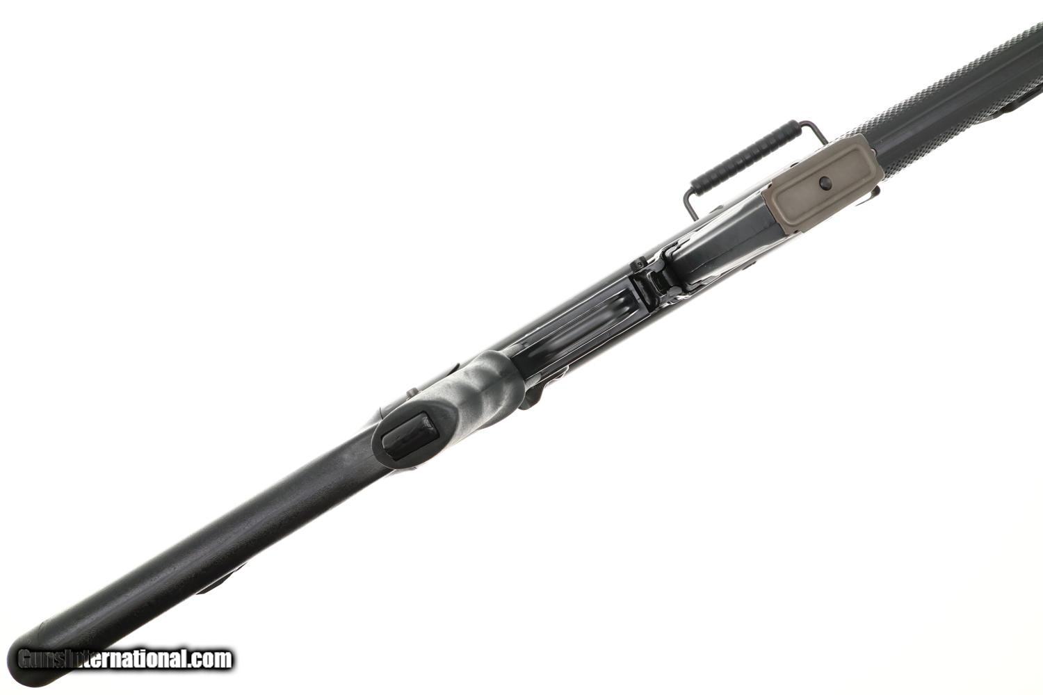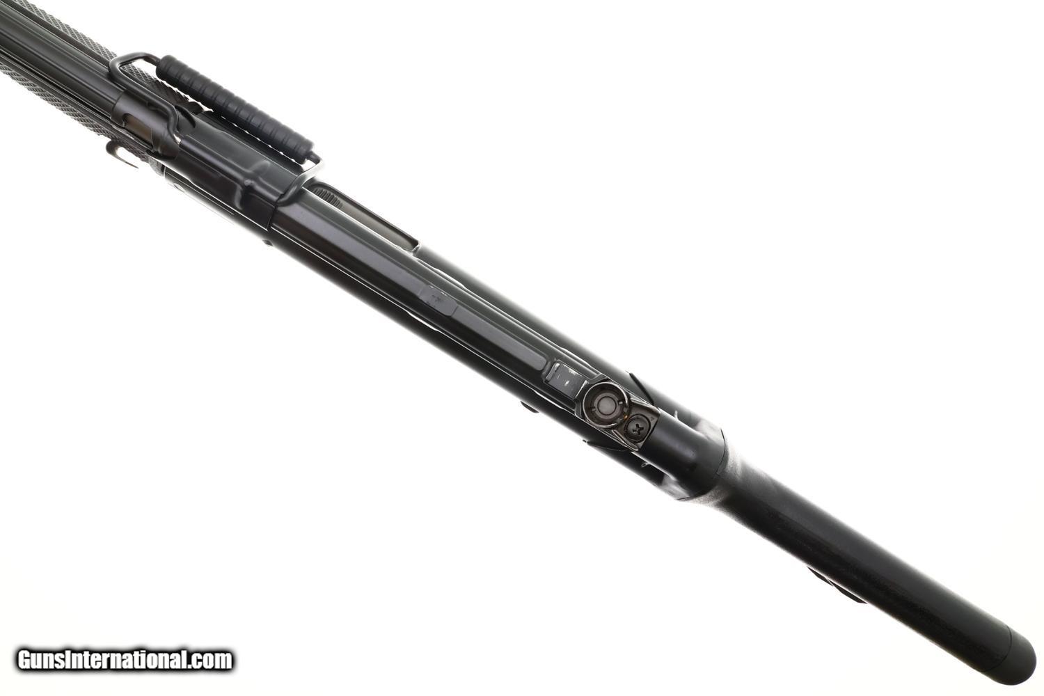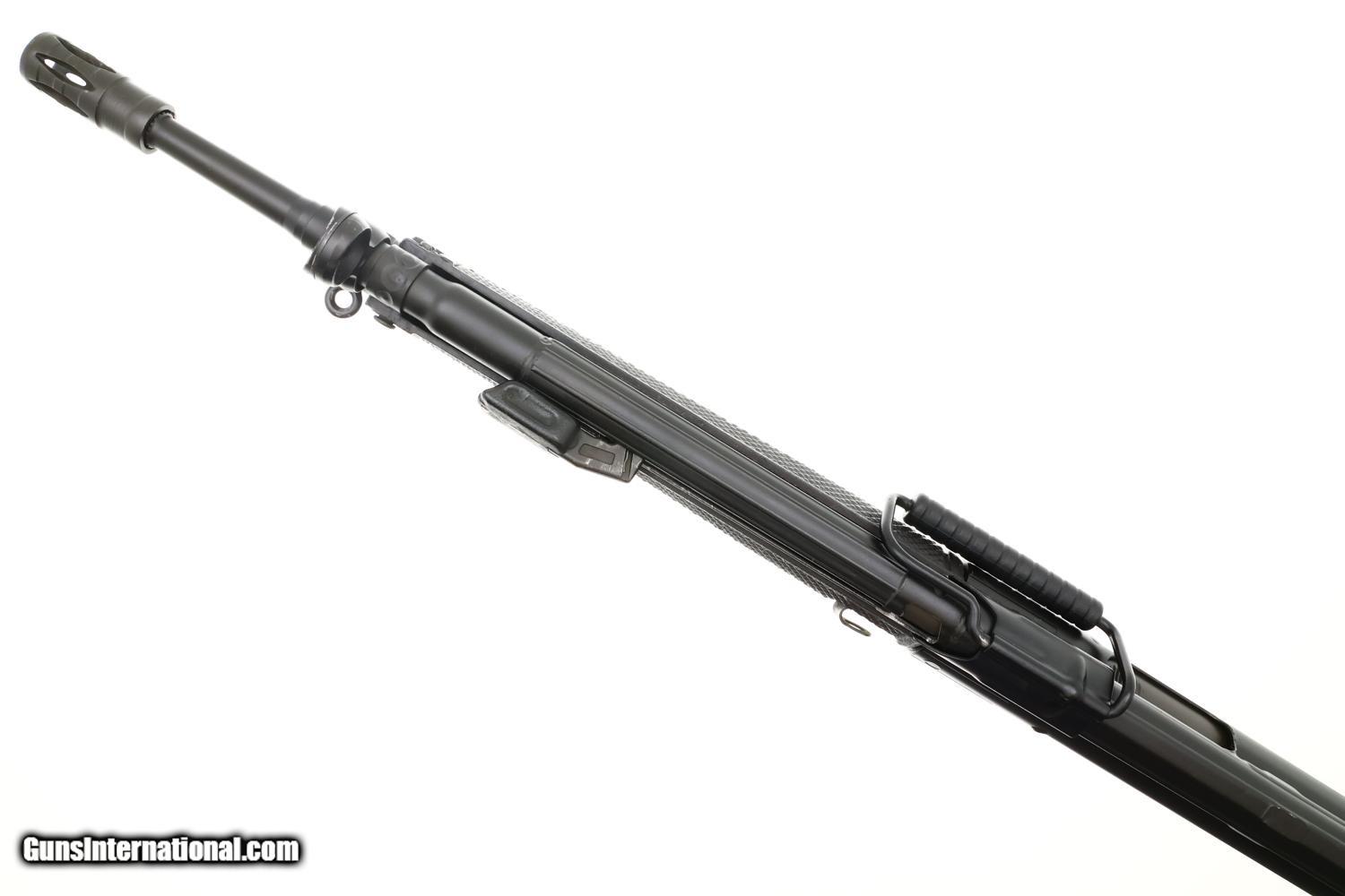 Description: Synopsis: Scarce H&K Model 43 rifle, cal. .223, an early semi-automatic predecessor to the HK93, whose features include a checkered plastic forend, pistol grip, fixed stock, and flash hider. Approximately 200 imported prior to 1974, scarce by any metric! Description: Standard configuration HK 43 semi-automatic rifle, cal. .223, SN: 1001363E, predecessor to the H&K 93, created 1974 with approximately 200 imported to U.S. Features include a 16 inch barrel with attached flash hider, post front sight and drum/height adjustable rear sight, black synthetic furniture including pistol grip and fixed buttstock with dual sling attachment points on left side, complemented by a carrying handle. Receiver markings include "HK 43 1001363 E 3/74" on the left side and "Made in Germany excl. for SACO Art. Va. 22 209 Kal. .223" on the right side. Standard, unmarked, 30 round steel magazine. The HK43 is the predecessor to the Heckler & Koch 93 semi-automatic rifle, specifically designed for sale to conscripts to familiarize them with their service rifle before entering military service, a common practice in Germany and Switzerland. RESTRICTED AS ASSAULT WEAPON WITH HIGH CAPACITY MAGAZINE. WILL NOT SHIP TO RESTRICTED STATES. Condition: EXC+ original black paint and phosphate finishes with minor sharp edge wear and a few very superficial handling marks. Mirror bright, as new, bore. Correct manual mechanics. A wonderful, EXC/nearly new rifle! RESTRICTED AS ASSAULT WEAPON WITH HIGH CAPACITY MAGAZINE. WILL NOT SHIP TO RESTRICTED STATES. SOLD Manufacturer: H&K Model: 43 Rifle Serial Number: 1001363E Caliber Info: 0.223 Condition: EXC |