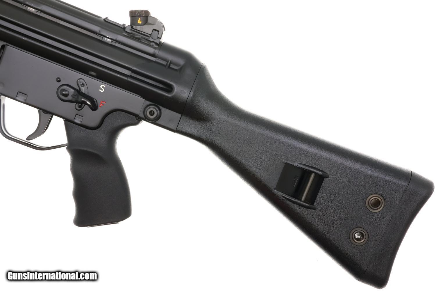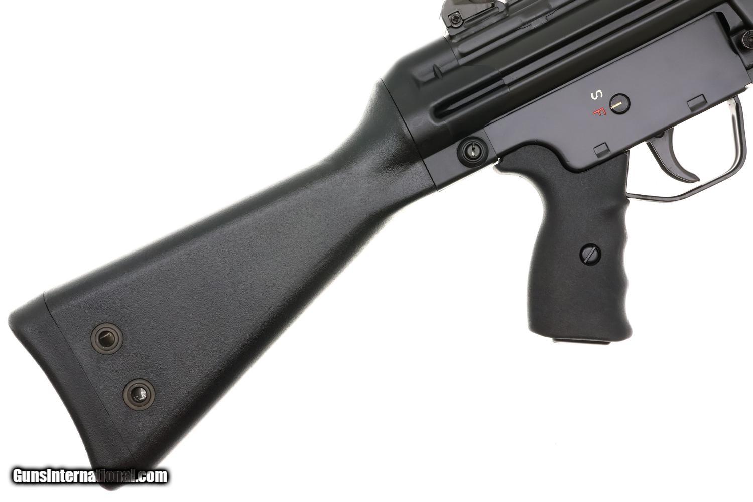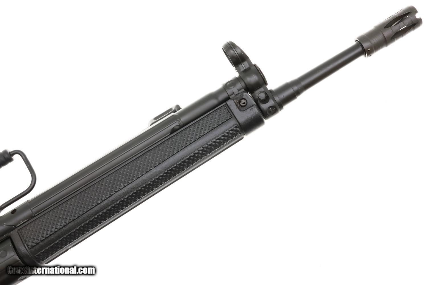 Scarce H&K Model 43 rifle, cal. .223, an early semi-automatic predecessor to the HK93, whose features include a checkered plastic forend, pistol grip, fixed stock, and flash hider. Approximately 200 imported prior to 1974, scarce by any metric!
