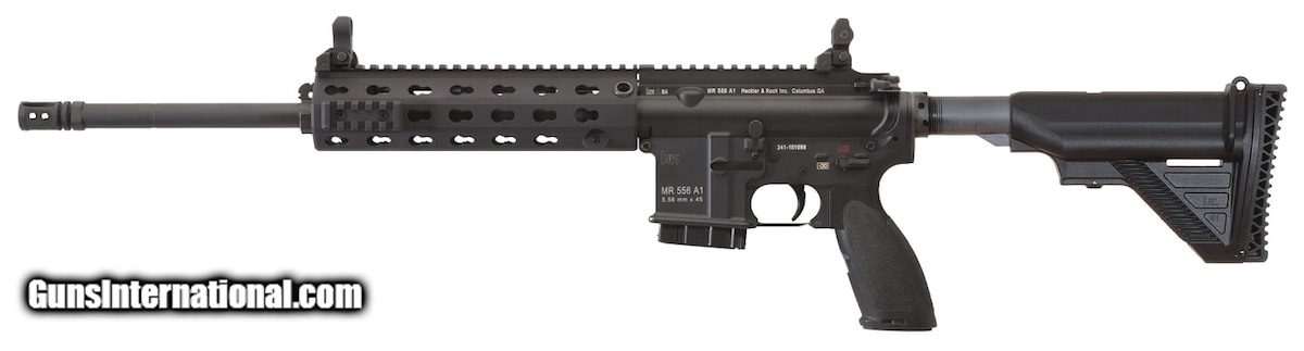 Description: Guns Listing ID: 671206 A direct descendant of the HK416 the MR556A1 is a semiautomatic rifle configuration with match rifle capability developed for civilian users. The MR556A1 uses the HK proprietary gas piston operating system employing a piston and a solid operating pusher\" rod which virtually eliminates malfunctions common to direct impingement gas systems since hot carbon fouling and waste gases do not enter the receiver area. The HK Modular Rail System MRS is truly freefloating for maximum accuracy. The MRS handguard has a more ergonomic design yet retains many features from the previous FFRS. It uses an HK proprietary keyhole design to allow the attachment of Picatinny rail segments to the handguard. The MR556A1 also has a Picatinny rail machined into the top of its upper receiver for mounting optics and mechanical sights. Major subassemblies including the upper receiverbarrel assembly are fully interchangeable with other high quality ARstyle firearms. The MR566A1 is produced in the USA from both American and Germanmade components. The Germanmade unchromed barrel is produced by HKs famous cold hammer forging process with the highest quality steel for a barrel that provides superior accuracy and long service life. This lowcapacity model is supplied with one 10round magazine a 9\" MRS handguard and Troy Microsights.\ SOLD Manufacturer: HECKLER & KOCH Model: MR556 Caliber Info: 5.56X45MM NATO Condition: new Barrels: 16.5 BARREL Finish: BLACK |