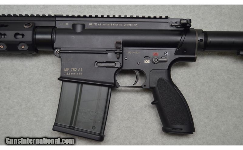 Description: H&K MR762A1 Semi-Auto Rifle -Pioneered by Heckler & Koch in the G36, HK416, and HK417; this method virtually eliminates malfunctions common to direct impingement gas systems since hot carbon fouling and waste gases do not enter the receiver area. The MR762A1 stays cleaner, reducing heat transfer to the bolt and bolt carrier, and drastically reducing wear and tear on other critical components. The service life of all parts is increased substantially. The MR762A1 uses a barrel produced by Heckler & Koch's famous cold hammer forging process. This manufacturing process uses the highest quality steel, producing a barrel that ensures superior accuracy, even after firing thousands of rounds. Minor handling marks and wear on the brass deflector & top rail near the muzzle. One magazine and no case. 7.62x51mm SOLD Metal Condition: Excellent Wood Condition: Excellent Bore Condition: "Clean, good rifling Barrels: 18 Fore End: KeyMod Butt Pad: Adjustable Weight: 10lb 6oz Item Location: Fort Worth, TX |