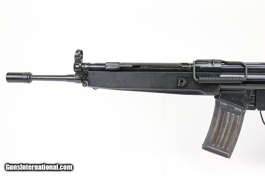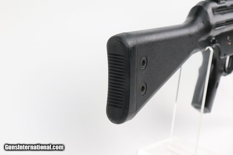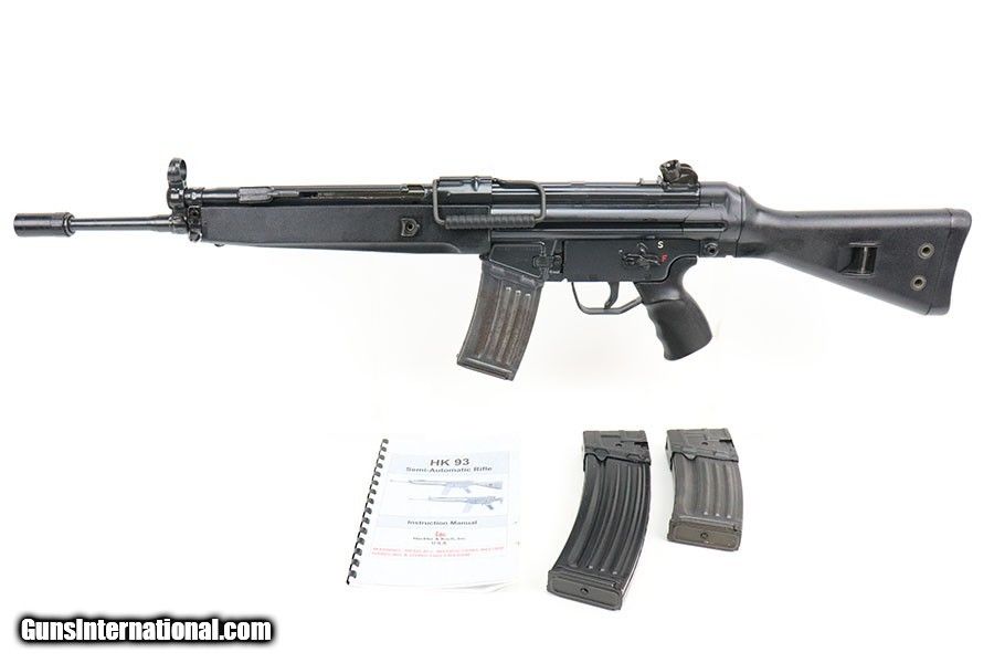 Description: This is a terrific example of a Heckler & Koch HK 93 from 1980. The HK 93 is the semi-auto version of the HK 33 in .223, and has a roller-delayed blow back system. About 18,000 HK 93 rifles were imported compared to about 49,000 HK 91s. The gun is in excellent condition with just minor wear/flaking on the sides of the barrel. Minty bore. Comes with two steel German 20rd mags, and a one aluminum 40rd mag. Also includes manual and muzzle cover. SOLD Curio/Relic: Yes Rifle Caliber: .223 Remington |