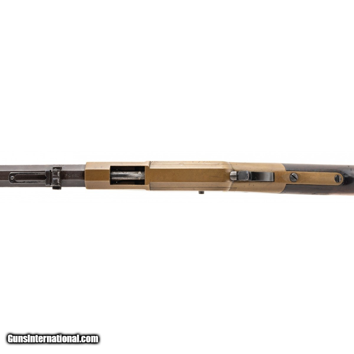 Description: "Serial number 8096. Made in 1865. 44 Rf caliber with a 24" barrel. This is a nice sharp gun with a smooth dark brown patina on the metal. The brass is very good with one minor scratch on the left hand side of the frame. The wood is very good. There is a small repair on the left hand side of the stock where the sling swivel was removed and filled. It is almost undetectable. The barrel also had the sling swivel removed. This gun is all matching. This gun still falls in the civil war range as it was made in early 1865. Very fine example of a Henry Rifle! SOLD Antique: Yes |