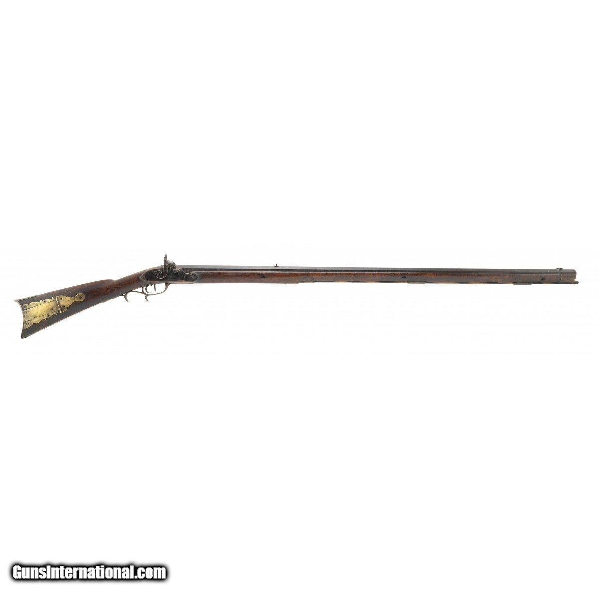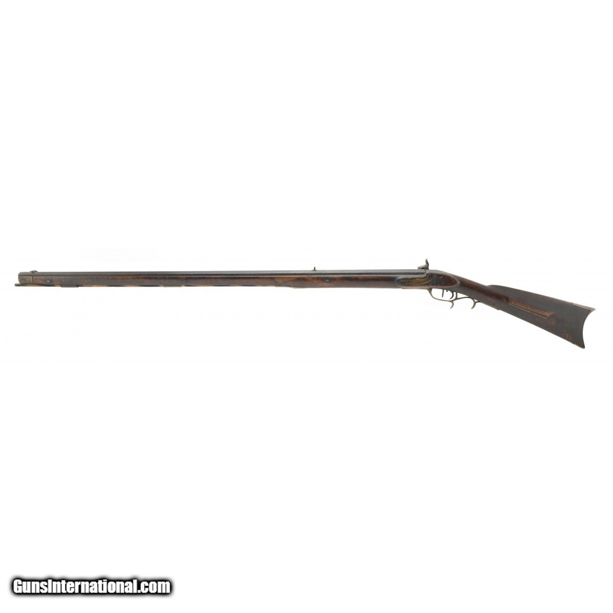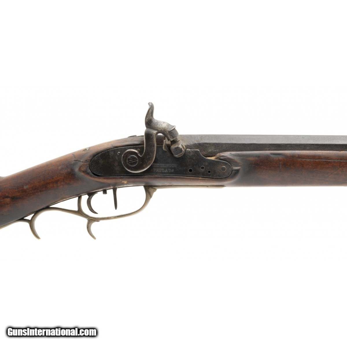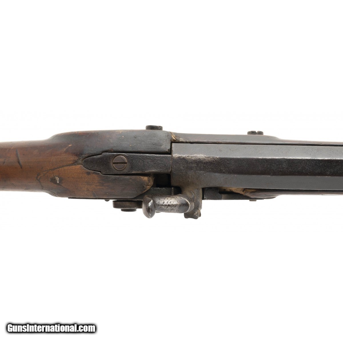 Description: "Made 1820s- 1830s. 50 caliber with a 40 ½" barrel. Very interesting gun in as found condition. Metal has a dark brown patina with some pitting. Wood is very good as it is intact. This gun has been converted to percussion. The areas around the tang and just forward of the drum conversion have quite a lot of percussion burnout. Action works well. SOLD Antique: Yes |