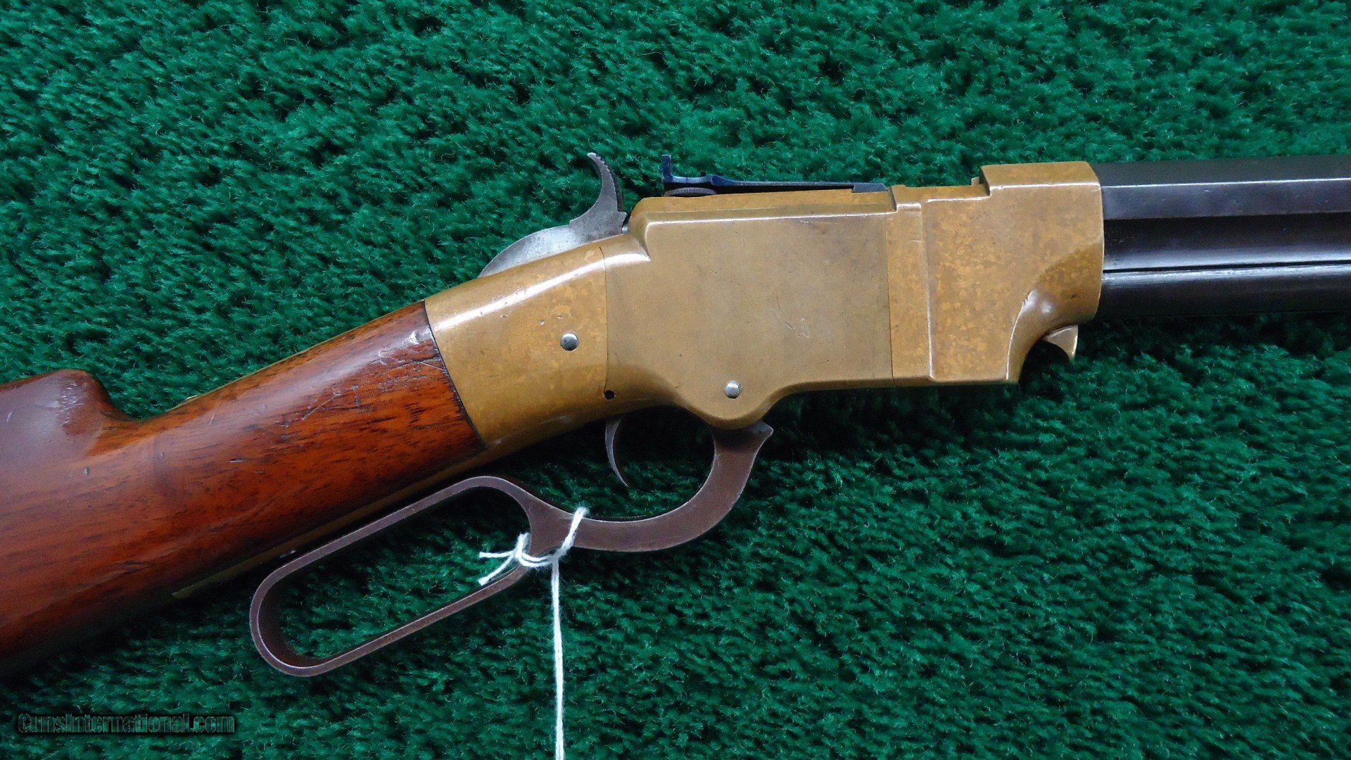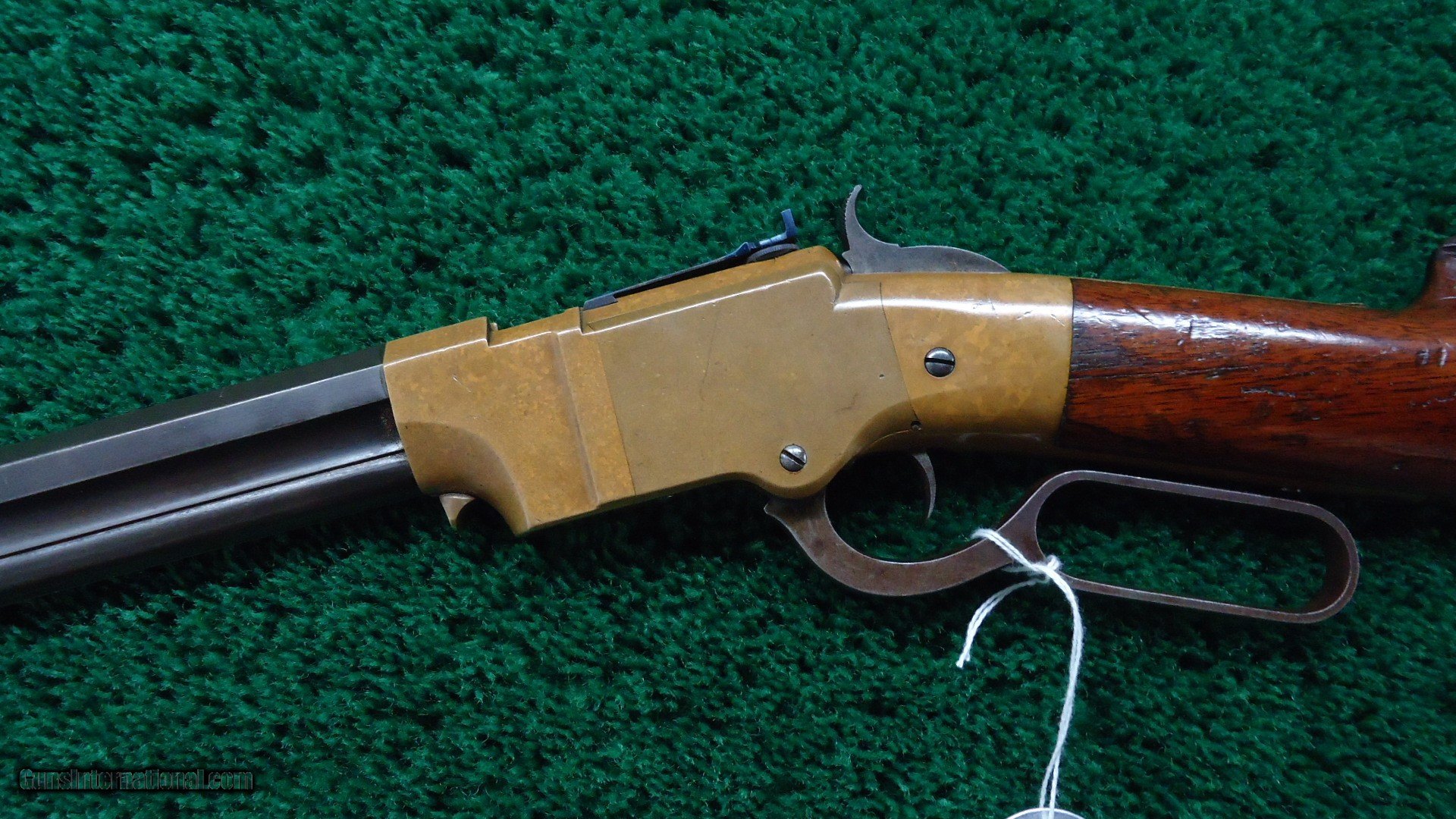 Description: It has the usual one-line light address on top of the 16 inch barrel. Original sights. Rear sight retains strong fire blue. Excellent bore. Barrel is in excellent condition with a considerable amount of blue starting to tone. Brass receiver has turned a beautiful deep butterscotch color as well as the brass buttplate. Wood is very good with most varnish and just a few light handling mars. All the screws are numbered to the gun except the upper tang screw is a replacement. Correct buttplate. Could be a replacement follower but a well done one. It has a rack number "18" on the bottom of the frame. This is a sharp gun. Leroy Merz Antique Firearms specializes in antique and vintage Winchesters and other fine American firearms. Since 1965 Mr. Merz has taken part in the world of firearms and has been a contributor to many well known reference books. We have hundreds of additional guns in every price range at our home online. Search for Merz Antiques in google. SOLD Antique: Yes |