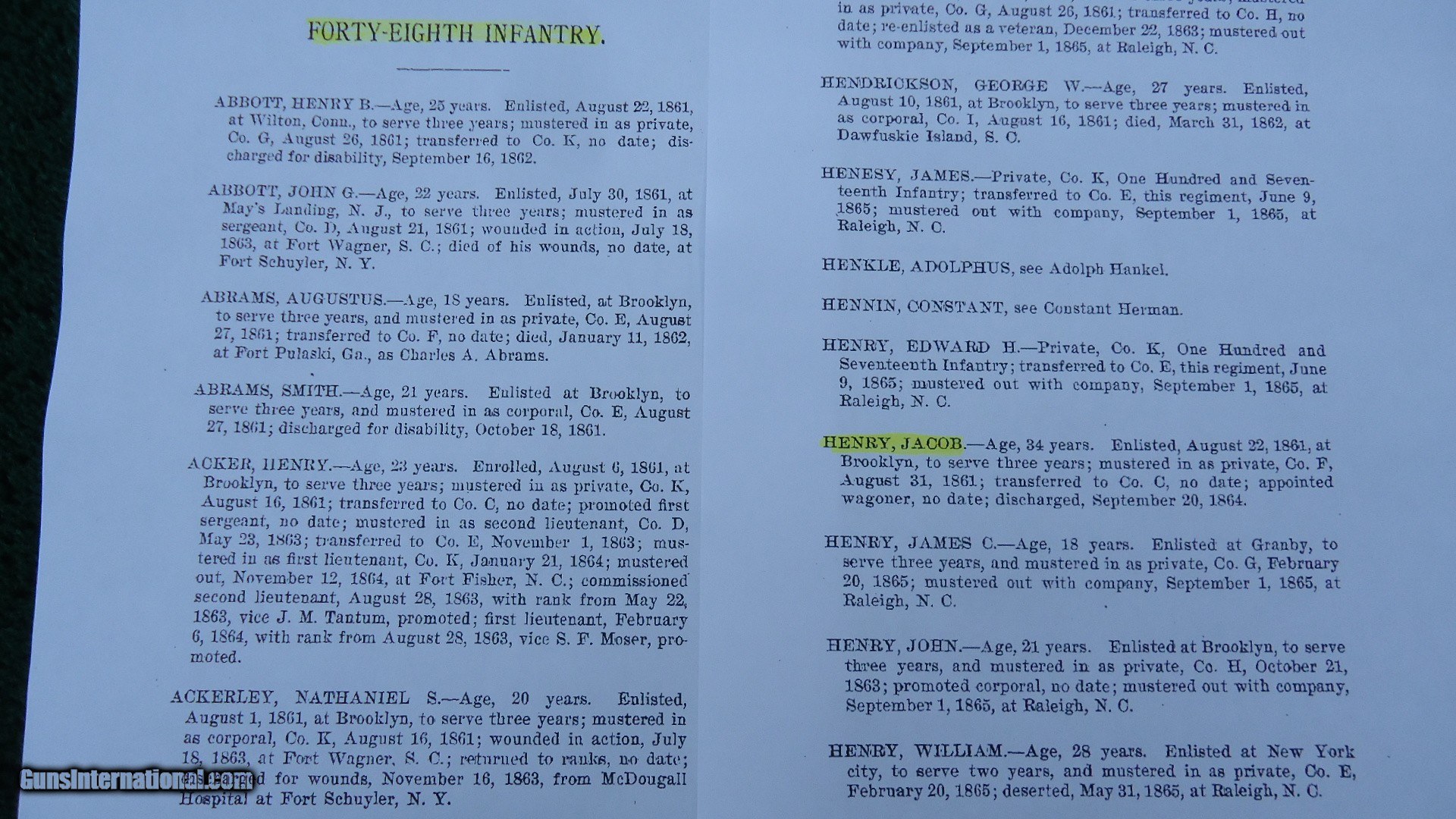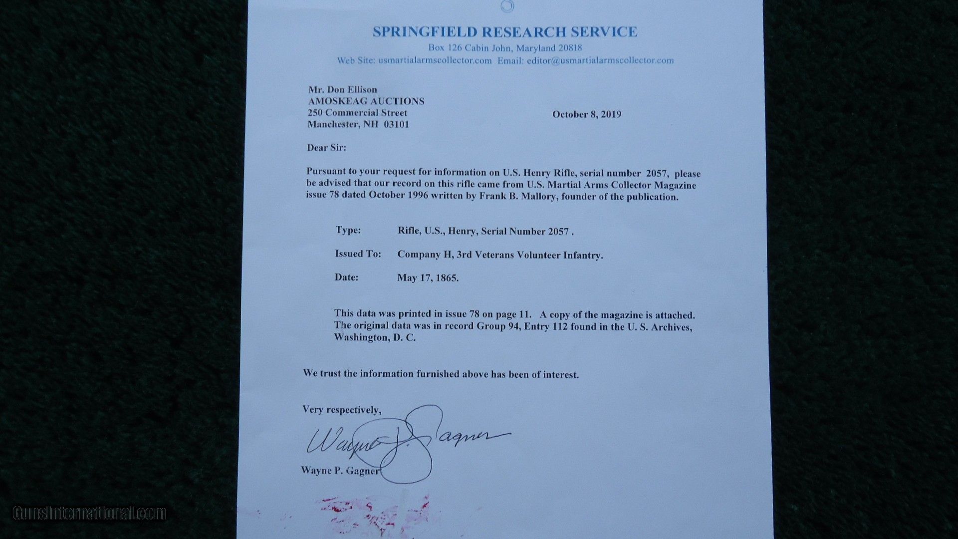 DOCUMENTED CIVIL WAR 1ST MODEL HENRY RIFLE