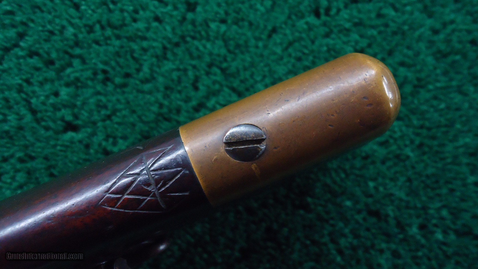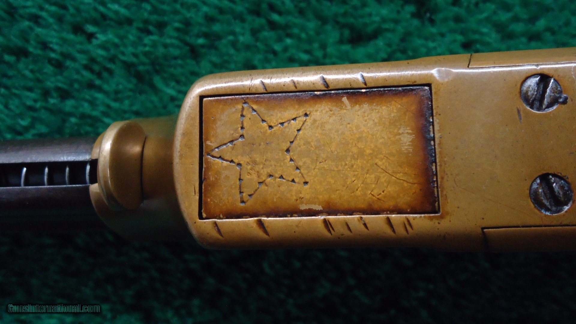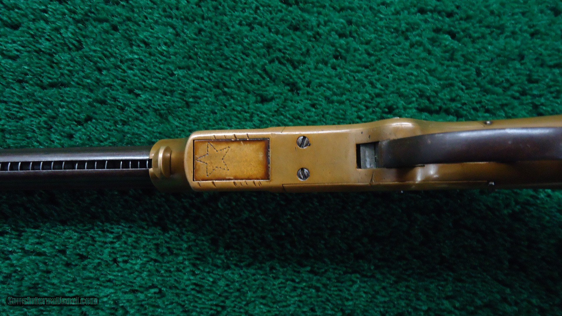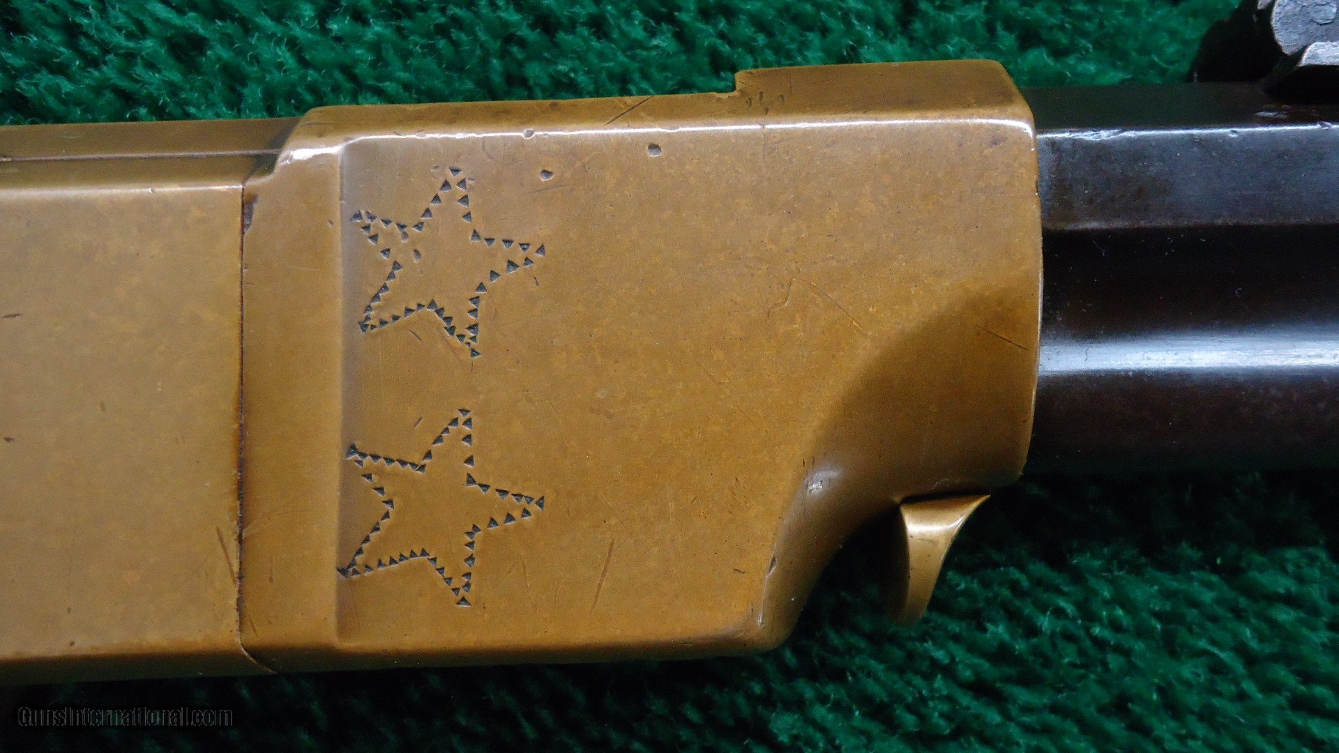Description: This Henry is in beautiful condition. Comes complete with a letter from the Springfield Research Service stating serial number, Issued to Company H, 3rd Veterans Volunteer Infantry, May 17 1865. It is listed by serial number in the US Martial Arms Collector Magazine issue 78. Research indicates it was issued to Jacob Henry who served in the 48th New York Infantry and enlisted at the age of 34. I believe the article is available through the US Martial Arms Collector Magazine as a back issue. The gun is great looking with the brass having turned a pale yellow. Sharp corners and functions good. The wood is in great condition with 14 stars stamped alongside the buttplate. I have seen this before and believe it is just to represent Patriotism. On the frame there is also some stars as well as one on the elevator. Barrel markings are good. Correct sights and original follower. All matching numbers. This is one of the nicest ones I have had for a long time. Leroy Merz Antique Firearms specializes in antique and vintage Winchesters and other fine American firearms. Since 1965 Mr. Merz has taken part in the world of firearms and has been a contributor to many well known reference books. We have hundreds of additional guns in every price range at our home online. Search for Merz Antiques in google. SOLD Antique: Yes Rifle Caliber: .44 Rimfire |