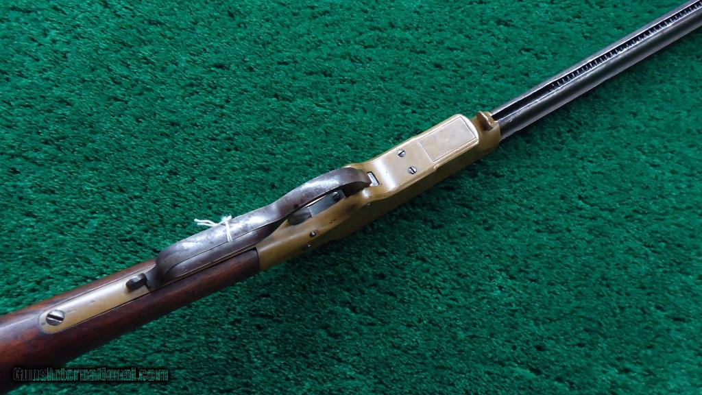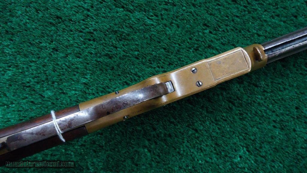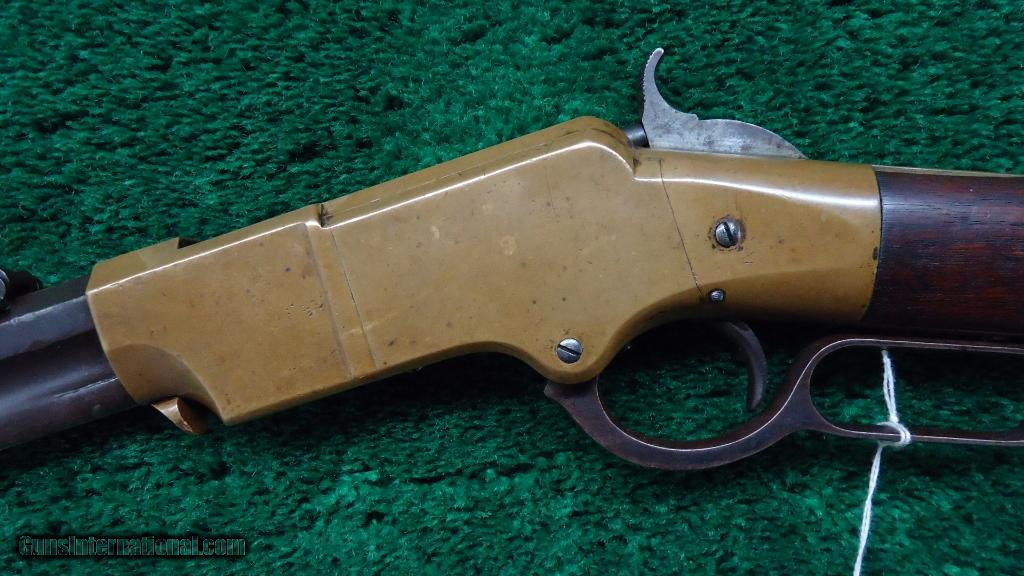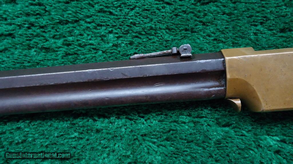Description: Manufactured March 1865. Gun is in good condition for it's age. Dings and mars that would be typical of any Henry that was used hard. It looks like the front blade sight has been replaced, a peep sight added to the ladder sight and possibly a tang sight at one time or another because of the hole in the upper tang. Aside from these period modifications the rifle remains in good condition.Good rifling. The brass receiver and buttplate have a very attractive patina. I think the stock may have been lightly sanded and re-oiled but remains in good condition with a visible "Henry Bump". This is a good example of a late Civil War production HenryLeroy Merz Antique Firearms specializes in antique and vintage Winchesters and other fine American firearms. Since 1965 Mr. Merz has taken part in the world of firearms and has been a contributor to many well known reference books. Just recently we mailed the 125th edition of our privately-published catalog. We have hundreds of additional guns in every price range at our home online. Search for Merz Antiques in google. rifle! SOLD Antique: Yes |
