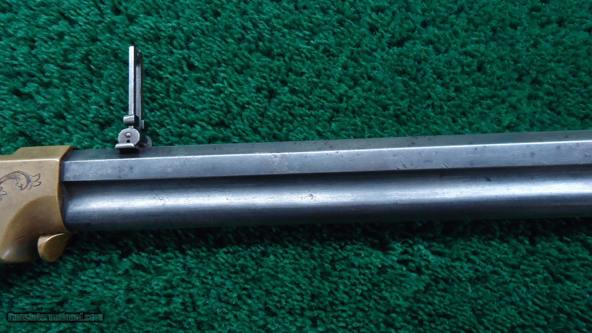 Description: Inscription on the right hand side of the receiver is "Henry E Darby from his Friends Cincinnati OH May 6,1867". This gun has many documents related to Mr. Darby such as Marriage license, pay stub from his Civil War service etc. On the opposite side of the frame is engraved with the Eagle Banner. The top has the Eagle Shield. Receiver is sparsely engraved with the style of engraving of the Civil War. Receiver is an untouched butterscotch patina. Good functioning action. 11,500 serial range and all matching throughout. Original Henry flip up rear sight and typical inlaid front sight. Barrel has sharp corners and good address. Traces of blue in protected areas. Springs function correctly. Wood has a considerable amount of original finish with the Henry bump visible. Brass buttplate. This is a nice original Henry. Leroy Merz Antique Firearms specializes in antique and vintage Winchesters and other fine American firearms. Since 1965 Mr. Merz has taken part in the world of firearms and has been a contributor to many well known reference books. We have hundreds of additional guns in every price range at our home online. Search for Merz Antiques in google. SOLD Antique: Yes Rifle Caliber: .44 Henry |