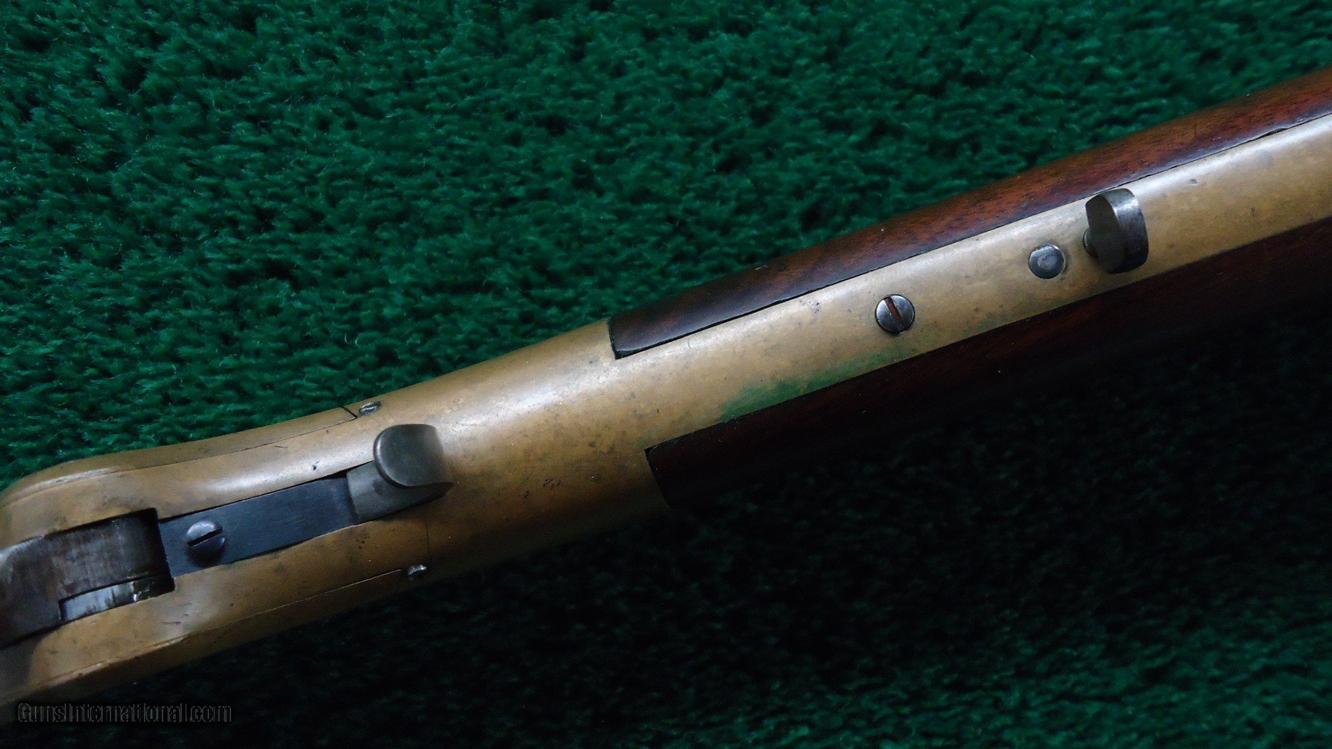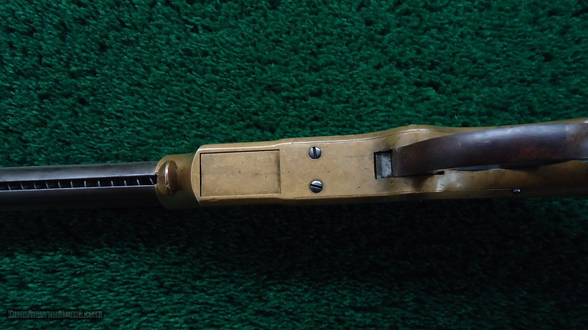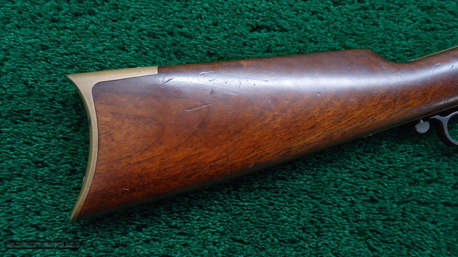Description: Stock has nearly all original finish intact. Evidence of the “Henry bump”. Brass buttplate is in fine condition. Barrel is mostly a plum/brown with good markings and sharp corners. Gun is in the 10k serial range. Henry ladder rear sight and typical front sight. Bore is very good condition. The brass receiver is a deep yellow patina. Action is crisp and tight. Excellent traces of case color on the hammer with the lever turned a brown color. The loading device slides forward and the barrel end pivots nicely. This is just a nice clean Henry with no signs of abuse. Leroy Merz Antique Firearms specializes in antique and vintage Winchesters and other fine American firearms. Since 1965 Mr. Merz has taken part in the world of firearms and has been a contributor to many well known reference books. We have hundreds of additional guns in every price range at our home online. Search for Merz Antiques in google. SOLD Antique: Yes Rifle Caliber: .44 Henry |