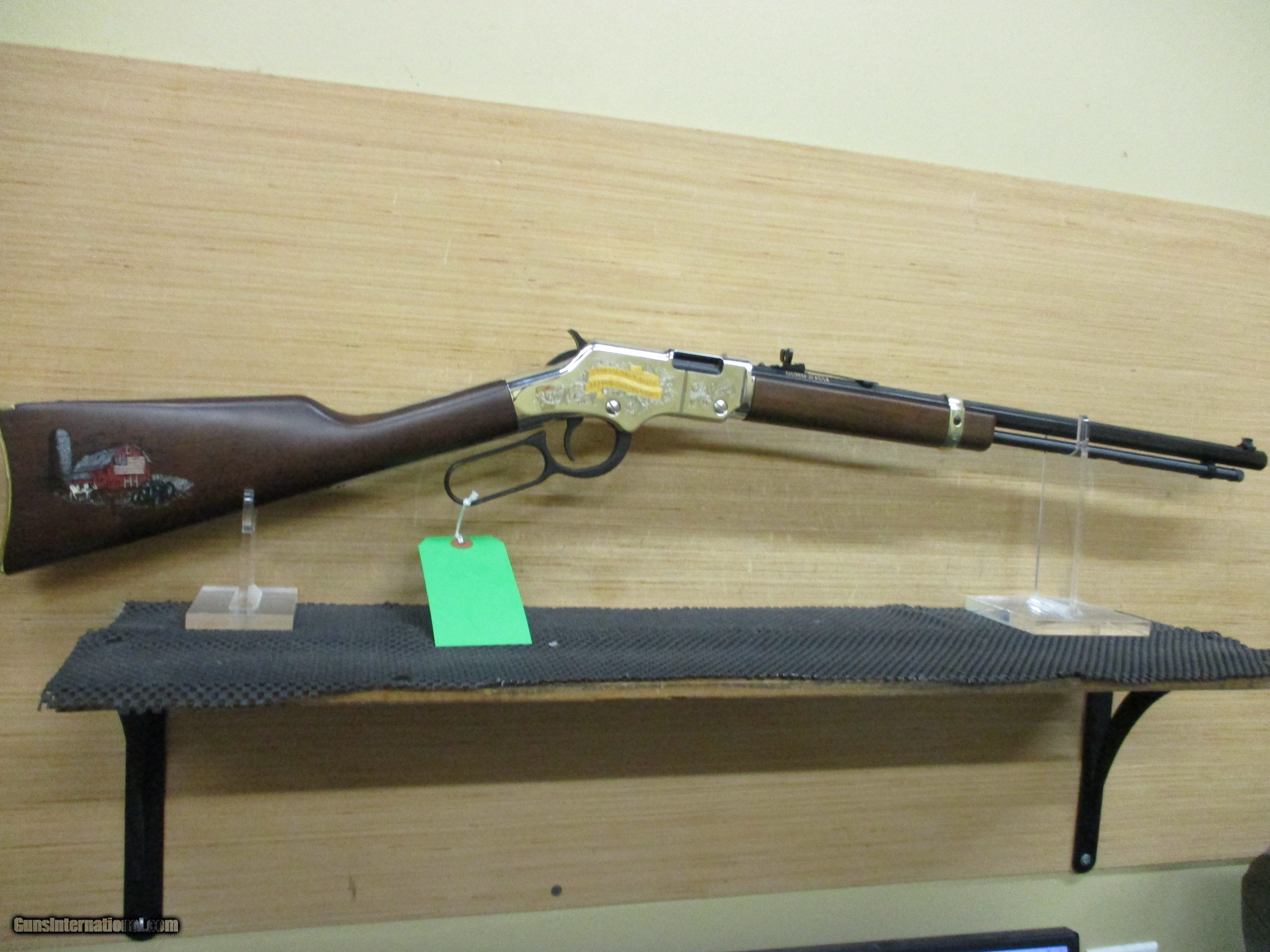 Description: CONSIGNMENT APPEARS UNFIRED Henry American Farmer Tribute Rifle H004AF 22 S/L/LR, 20" Octagon BBL, Lever Action, American Walnut Engr/Painted Stock, Blued Finish, Engr. Silver Receiver, 16 LR/21 S Rds THIS RIFLE APPEARS UNFIRED DOES NOT HAVE A FACTORY BOX ***PRICE INCLUDES SHIPPING & INSURANCE *** ****PLEASE CALL IN THE WITH THE SELLER’S INVENTORY NUMBER IF INQUIRING ABOUT A FIREARM****** WE DO NOT SHIP FIREARMS AND/OR FIREARMS’ PARTS OUT OF THE 50 UNITED STATES, SO DON’T ASK—YOU NEED TO KNOW IF FIREARM IS LEGAL FOR YOUR STATE PRICE REFLECTS PAYMENT BY MONEY ORDER / CASHIERS CHECK. A 3% PREMIUM IS ADDED FOR CREDIT CARDS. WE DO ACCEPT PERSONAL OR BUSINESS CHECKS, BUT THERE IS A GRACE PERIOD OF 10 BUSINESSS DAYS ON THEM. Shipping is $60 for handgun and $50 for long gun. Shipping to Alaska and Hawaii will be more based on weight of firearm. USPS SHIPPING IS HIGHER. WE DO OFFER LAYAWAY PLANS FOR 30,60, OR 90 DAYS. THERE IS A $5.00 CHARGE FOR EVERY 30 DAYS ITEM IS ON LAYAWAY. WE ALSO REQUIRE A 20% DOWN PAYMENT ON TOTAL OF LAYAWAY SALE. LAYAWAYS ARE NON- REFUNDABLE. HERE IS HOW THIS PROCESS WORKS. YOU WOULD CALL US AT 540-337-9218 WITH LISTER # TO PURCHASE THE GUN. THEN ONCE I HAVE RECEIVED PAYMENT AND AN FFL (FEDERAL FIREARMS LICENSE) FROM A LICENSED DEALER IN YOUR AREA OF YOUR CHOICE. WE WILL THEN SHIP THE GUN TO THEM. YOU WOULD THEN PICK UP THE GUN AT YOUR LOCAL DEALER AND DO PAPER WORK THERE. Please have your FFL Dealers contact information when you call. DOMINION OUTDOORS 15 ANGELA COURT FISHERSVILLE, VA 22939 540-337-9218 540-337-2422 fax M – F 9 a.m. to 6 p.m. ETZ Sat 9 a.m. to 4 p.m. ETZ ****PLEASE CALL IN THE WITH THE SELLER’S INVENTORY NUMBER**** ***PLANO HARD CASES AVAIABLE FOR PURCHASE $25.00 WITH THE PURCHASE OF A FIREARM** *** Online prices compared to in store prices will vary. *** SOLD |