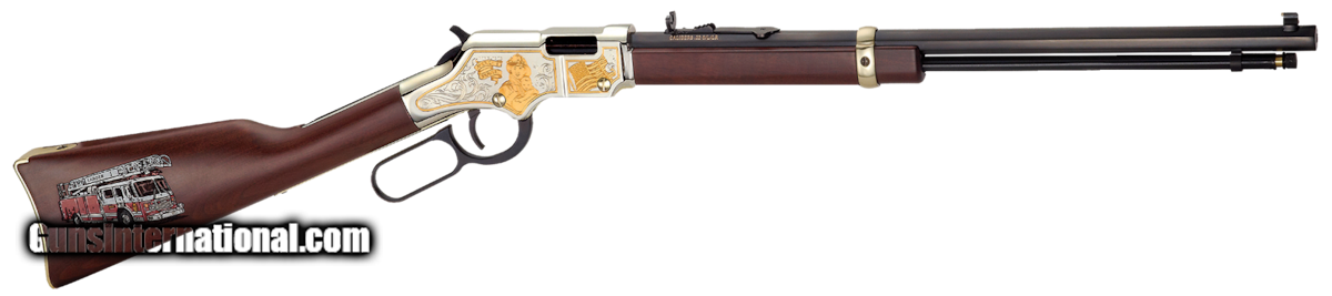 Description: Guns Listing ID: 588462 Henry Tribute Editions are lever action rifles designed to commemorate organizations such as the Shriners Fraternal Order of Eagles and the military and other groups including American farmers truckers and coal miners. A Tribute Editions American walnut stock is typically laser etched or hand-painted to depict the institution it commemorates and its engraved receiver may be plated with 24K gold. Henry Tribute Editions are built on the Golden Boy or Big Boy platform and accordingly feature an octagonal blued steel barrel adjustable buckhorn sights and tubular magazine. DETAILS Action Type Lever Action - Caliber .22 SLLR - Capacity 16rds LR or 21rds S - Length 38.5 - Barrel Length 20 - Weight 6.75 lbs. - Stock American Walnut - Sights Fully adjustable semi-buckhorn rear with reversible white diamond insert and brass beaded front sight The Firefighter Tribute Edition commemorates not only the actual firefighter, but also the public trust that Americans place in all firefighters who answer a call of distress. The original art for this rifle has been cut by hand engraver Rob Bunting and through a mechanical transfer the scenes and tribute text is impressed directly onto the nickel plated receiver cover retaining all of the hand engraved elements of the original. The Firefighter Tribute Edition is outfitted with a 20? octagonal barrel topped with classic buckhorn sights like all rifles in the award-winning Golden Boy family. Offered in caliber .22 S/L/LR. The American-made Henry Golden Boy Firefighter Tribute Edition is a fitting tribute to those who put it all on the line when the bell rings. You give us yourself, and for this we thank you. SOLD Manufacturer: HENRY Model: FIREFIGHTER TRIBUTE Caliber Info: .22 S/L/LR Condition: new Barrels: 20 BARREL |