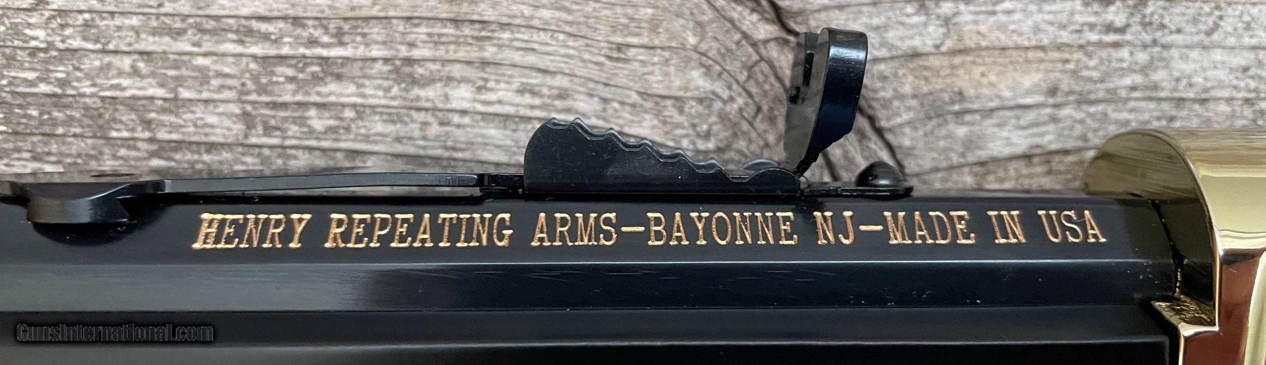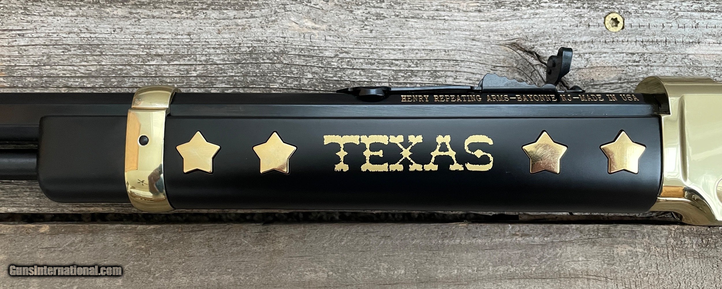 Description: NEW IN BOX. It’s a state known the world over for its hard-fought legacy, charming spirit, and the distinct pride that comes along with being a Texan. And that’s not to mention the cowboy hats, boots, brisket, and football. Texas is at the heart and soul of what makes our country great and we are proud to offer the Texas Tribute Edition as homage to the great Lone Star State. The inspiration for this rifle dates to a critical point in Texas history in 1901 with the eruption of the first gusher on Spindletop. This discovery of black gold (or Texas Tea) would change the course of Texas forever and revolutionize the progress of our country. Never seen on a Henry rifle before it, the Texas Tribute Edition features a deep black stain on all the walnut furniture, which provides a stark contrast to the gold and brass highlights throughout the rest of the rifle. The wood is then studded on both sides with inlaid metal 5-pointed stars that perfectly match the “Lone Star Flag” motif that is found on the buttstock surrounded by the Texas state outline. The left side of the buttstock is a bit more subdued with a lone star inlaid towards the buttplate. There’s no doubt that Texans love their guns, and it just so happens that we love making them. That’s why we pulled out all the stops to create a rifle as unique as the state that it represents. Remember the Alamo and Don’t Mess with Texas. SOLD Rifle Caliber: .22 Long Rifle Manufacturer: Henry Repeating Arms Model: H004TX (Texas Tribute) Serial Number: TX03891 Condition: NIB Metal Condition: NIB Wood Condition: NIB Bore Condition: NIB Barrel Type: octagon Action: lever action LOP: 14 inches Weight: 6.75 lbs. Sights: factory iron sights Manufacture Date: 2022 Extras: factory box and paperwork Item Location: FRANKLIN, TX |