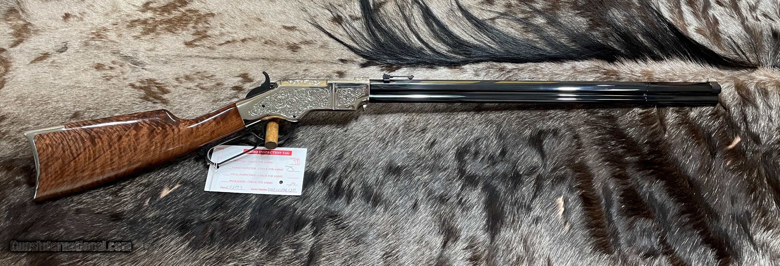 SOLD Rifle Caliber: .44-40 Winchester Manufacturer: Henry Repeating Arms Model: 1860 Original Henry, Cody Firearms Museum Series Serial Number: 2021CFM130 Barrel Length: 24.5 Condition: New Stock: Exhibition Walnut |
