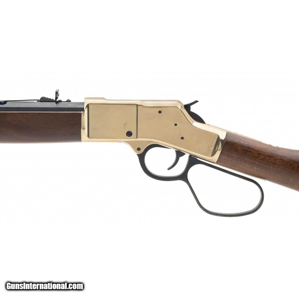 Description: " SN:BB0044795. Lever action rifle with a 20"" octagonal barrel, a brass receiver and a large loop lever. Overall in very good condition, with box. SOLD |