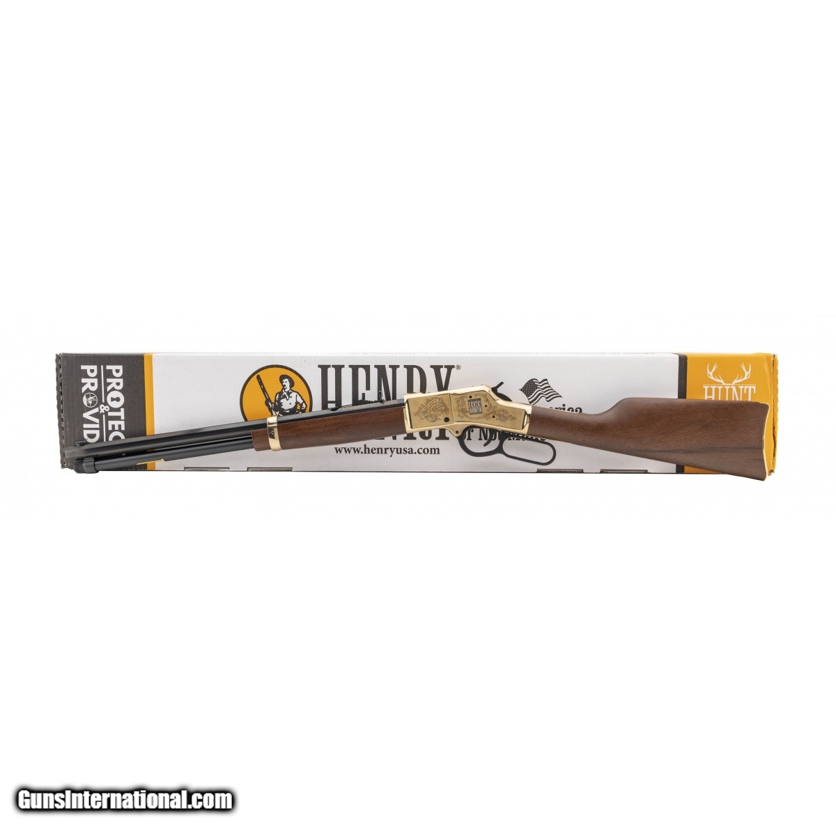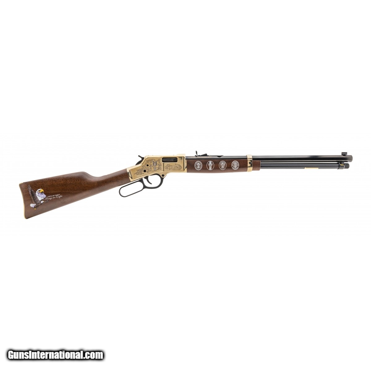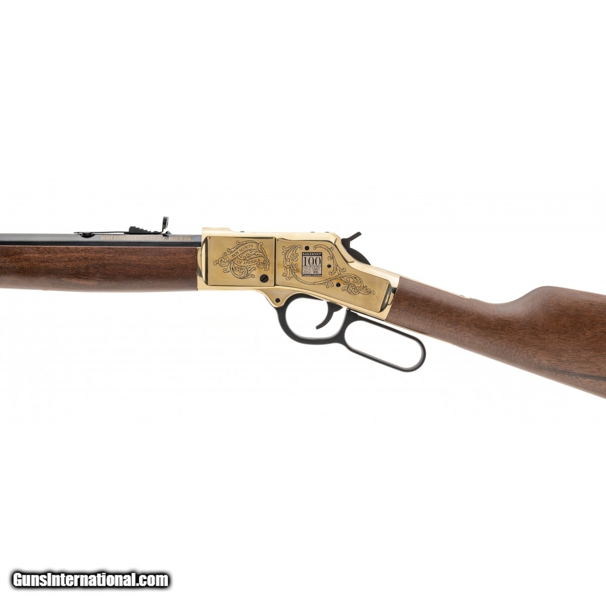 High-quality Eagle Scout Centennial Tribute lever action. 20-inch octagon blued steel barrel, and a hardened polished brass receiver. American walnut stock. 10-round capacity. NEW. UPC: 619835060174