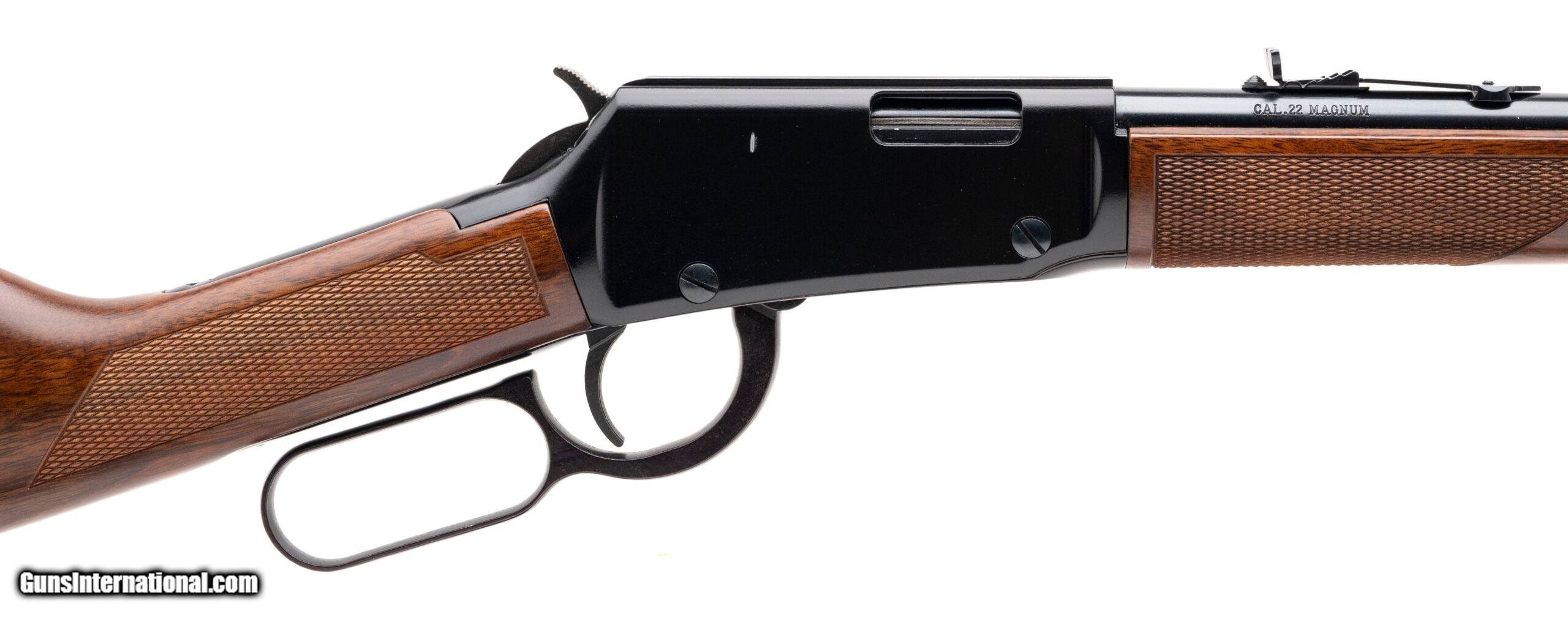 Description: "SN: M012555H. Modern production, .22 WMR with a 19.25"" barrel. Bore is very good. Lever-action rimfire rifle with a hooded front sight, adjustable semi-buckhorn rear sight, blued finish, and checkered wood stock & forend. Finish shows minor marks throughout, most notably to the receiver. Includes bandolier sling, and original box. Overall condition is very good. Price: $499.95 Contact Seller |