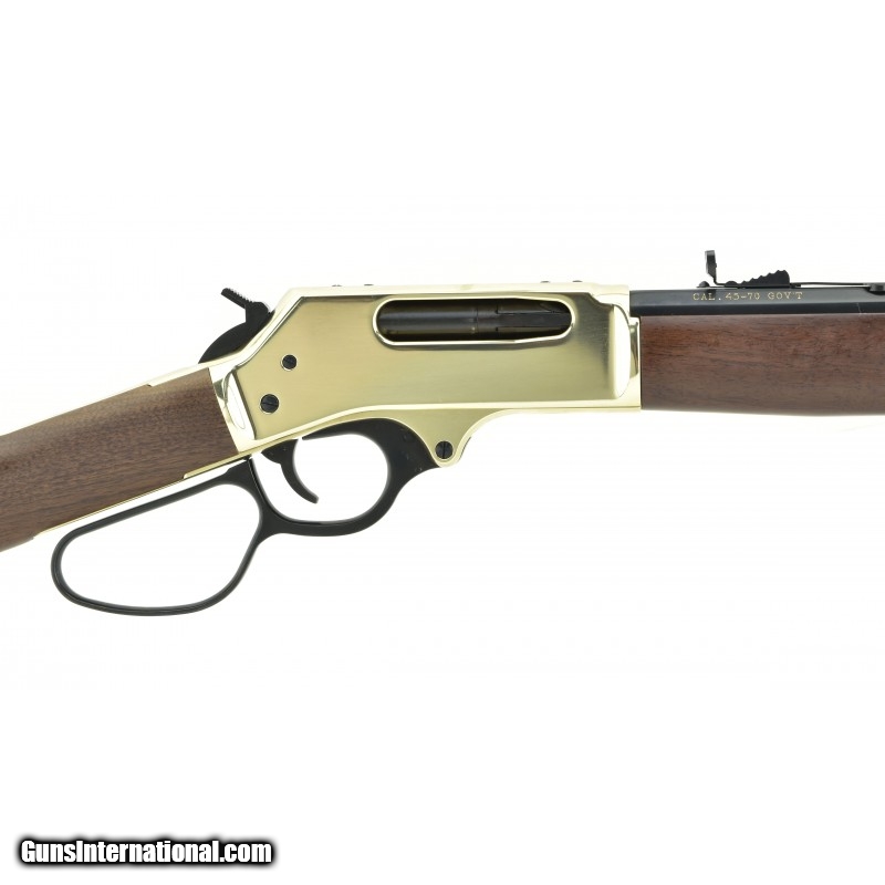 Lever action rifle, 22" Octagonal blued barrel, polished brass receiver, semi-buckhorn sight, and American walnut wood. New. UPC: 619835100047