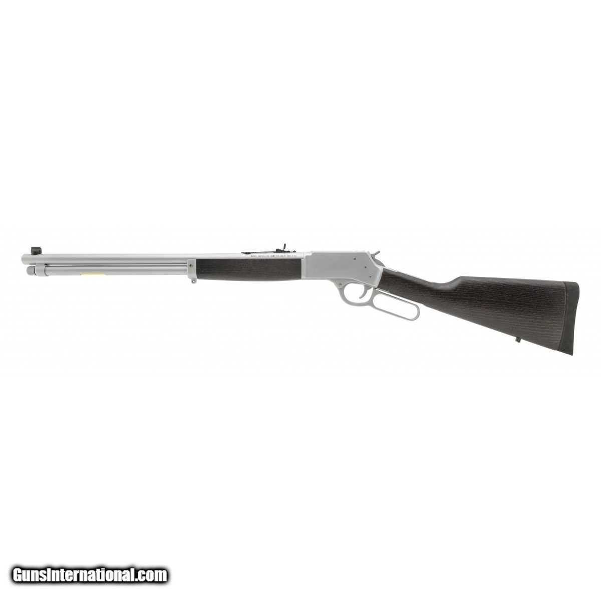 Description: " SN: BBS02441GAW. Modern production. .44 Mag/SPL with a 20"" barrel. Bore is excellent. Lever action rifle with an excellent satin chrome finish. Stock is in excellent condition. Overall excellent condition. SOLD |