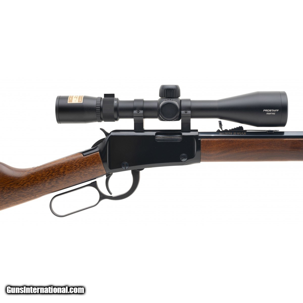 Sn: T80277H. Modern production. .22lr with a 20"" Octagonal barrel with gold inlay. Bore is very good. Lever action .22 rifle. Finish and stock are in very good condition with very light handling wear noted. Comes with Nikon Prostaff rimfire scope. Overall condition is very good.