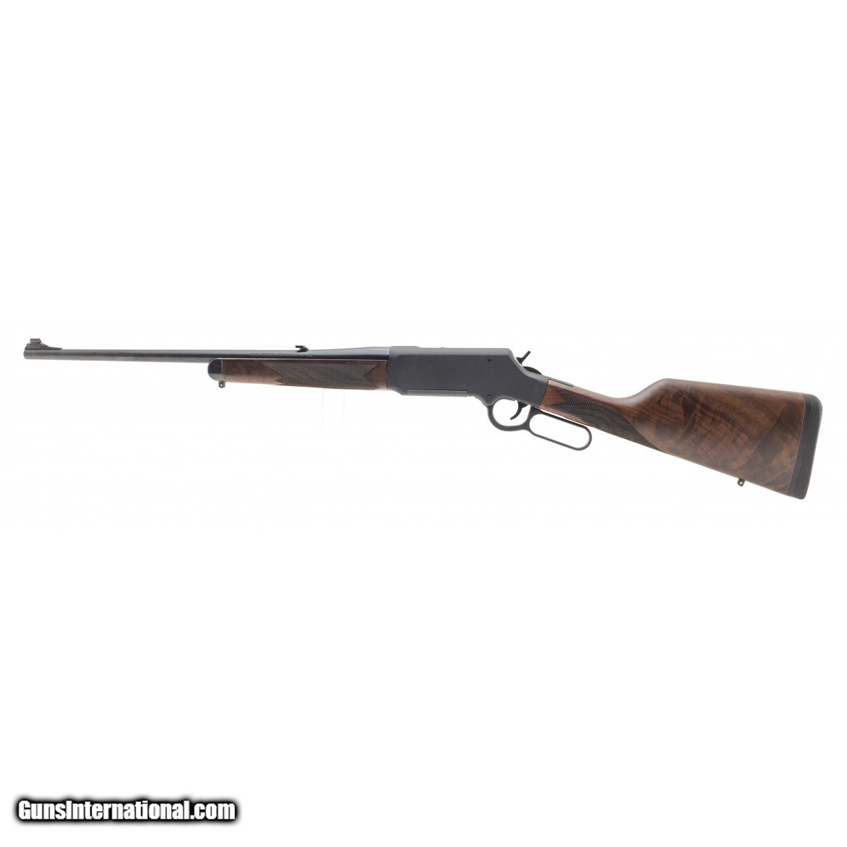 Description: " Lever action rifle with black finish, figured walnut stock and open sights. Excellent condition with box. SOLD |