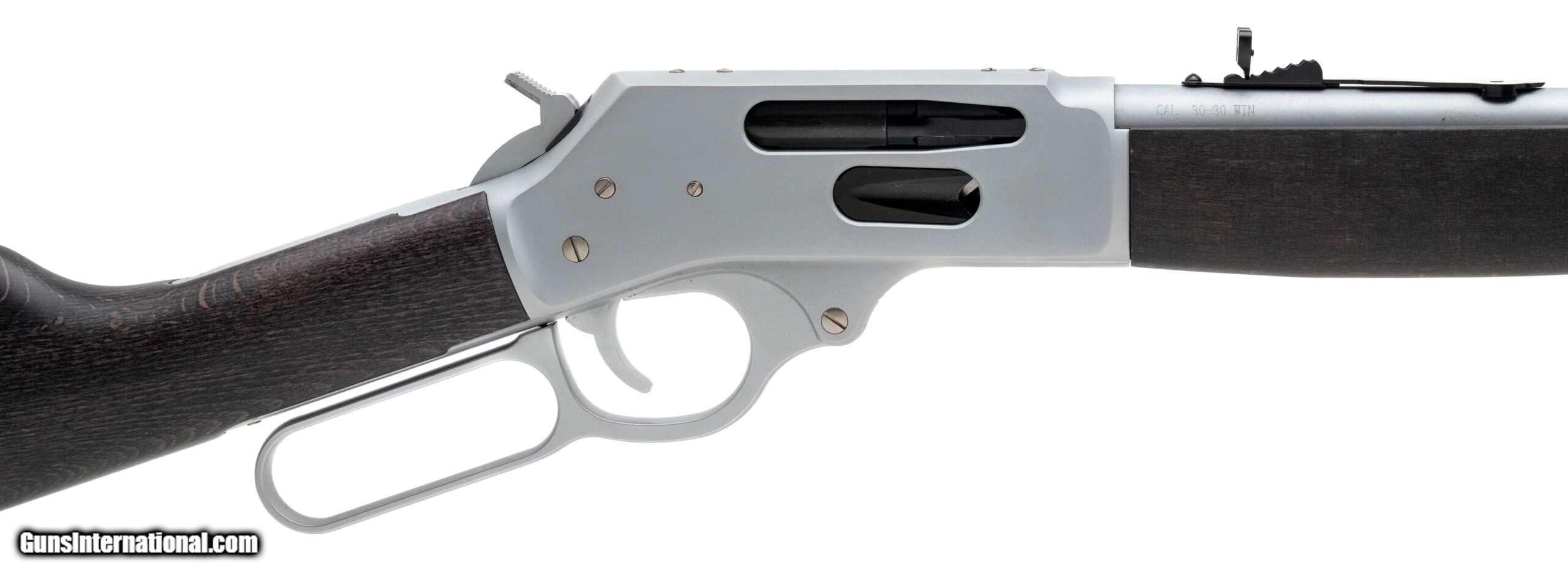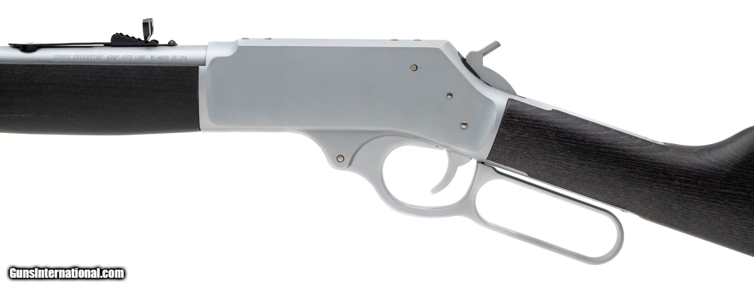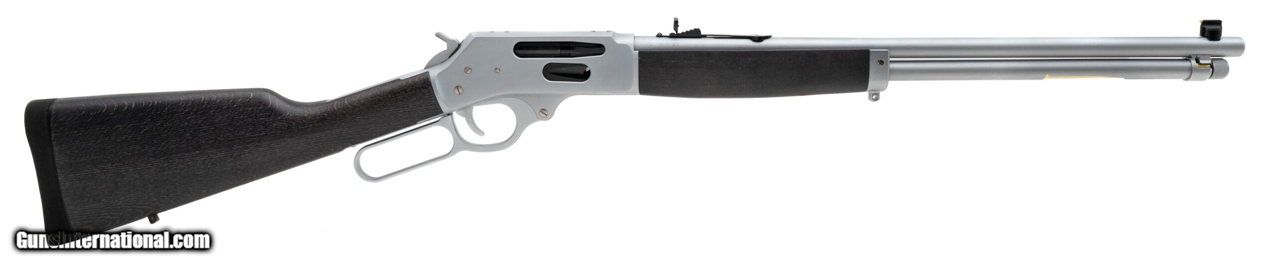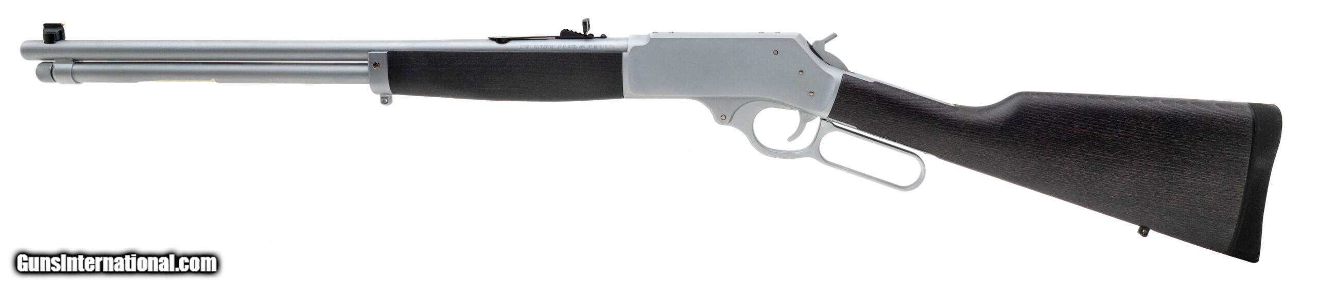 Description: "Lever-Action Rifle with a 20"" Round Barrel. Hard Chrome Plated Finish, Stained Wood Stock, Side Gate, Brass Bead Front Sight, Adjustable Semi-Buckhorn Rear Sight, and 5+1 Tubular Magazine. NEW. UPC: 619835090096 (STOCK PHOTO) SOLD |