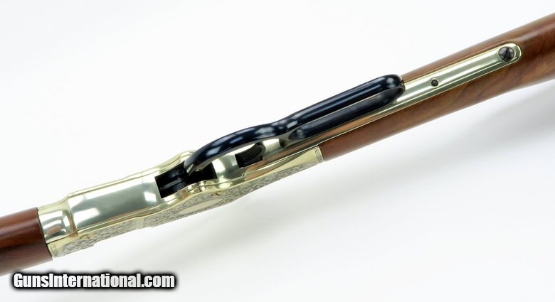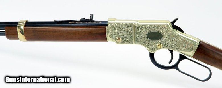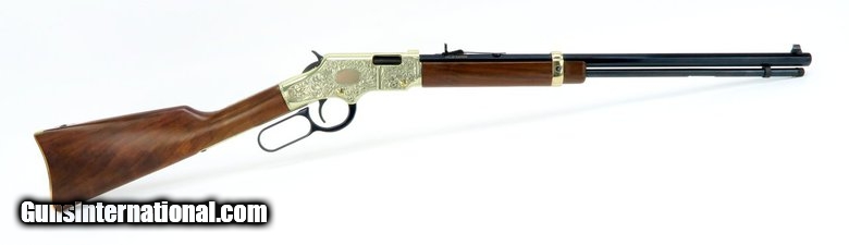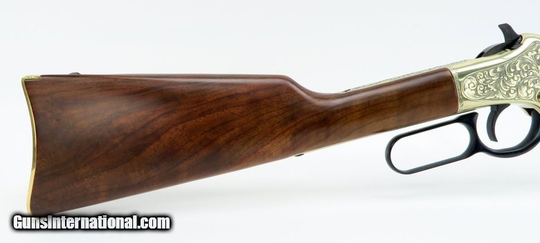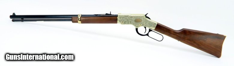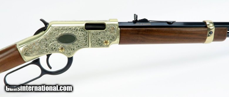 Description: US Henry Golden Boy .22 Magnum caliber rifle. Deluxe engraved model with octagon barrel and fancy walnut stock. Excellent condition.