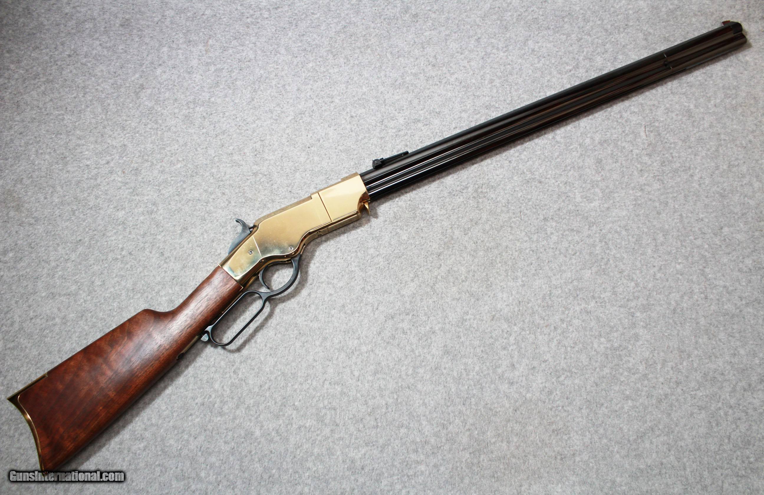 Description: Henry 1860 lever action rifle chambered in .44-40 WCF. It has a 24.5" octagonal barrel, the front sight is a black blade, and the rear sight is a black adjustable u-notch. The LOP is 14", and the capacity is 13+1. Free shipping to any Bass Pro Shops or Cabela's store. .44-40 Winchester Metal Condition: Very Good with Minor Handling Marks Wood Condition: Very Good with Minor Handling Marks Bore Condition: Bright and Clear Barrels: 24.5 inch Octagonal Weight: 9 lbs 0 oz Sights: Front: Black Blade / Rear: Black Adjustable U-Notch Item Location: Allen, TX Price: $1,899.99 Contact Seller |