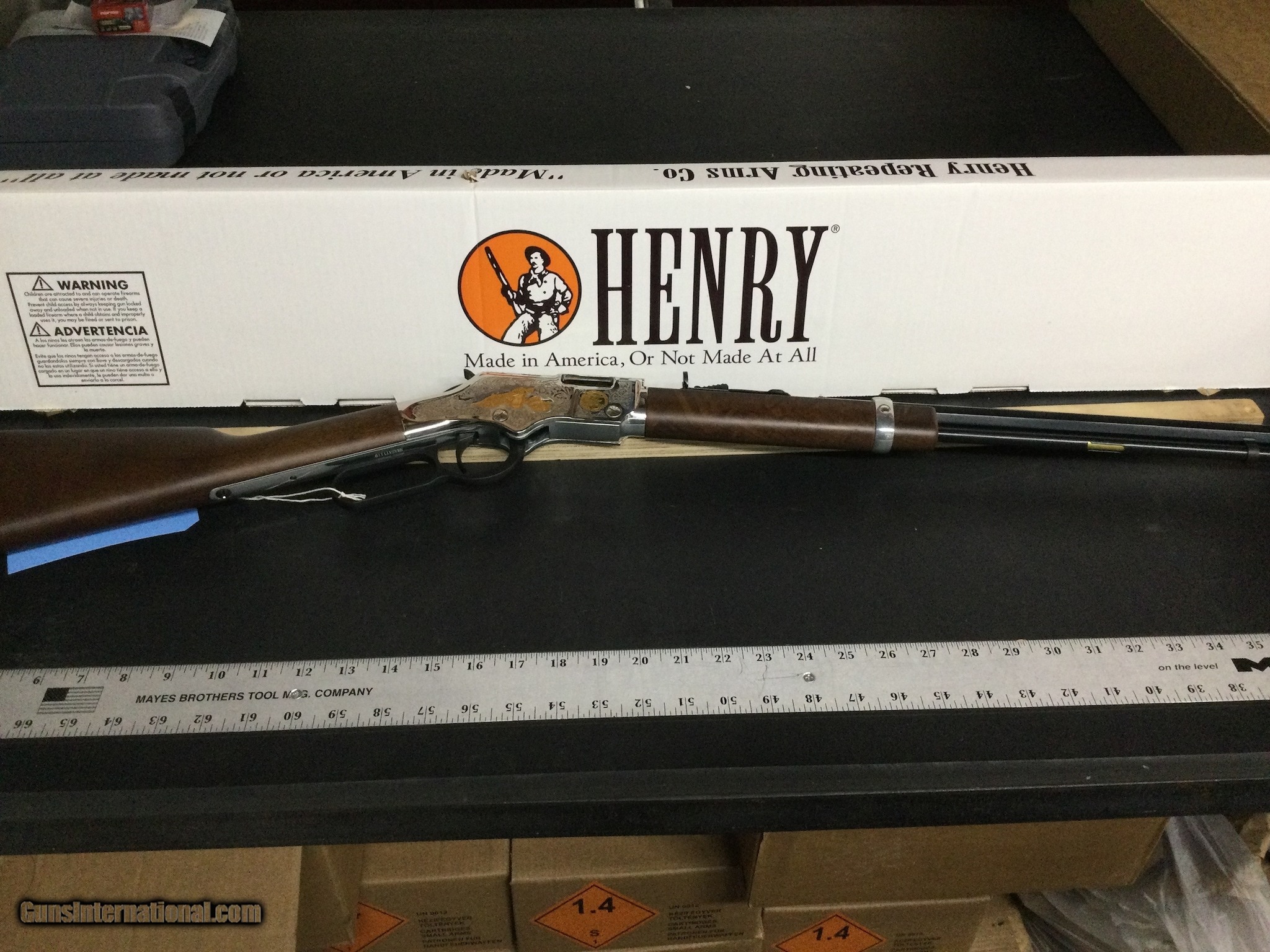 Description: Guns Listing ID: 50738 Henry Tribute Editions are lever action rifles designed to commemorate organizations such as the Shriners Fraternal Order of Eagles and the military and other groups including American farmers truckers and coal miners. A Tribute Editions American walnut stock is typically laser etched or hand-painted to depict the institution it commemorates and its engraved receiver may be plated with 24K gold. Henry Tribute Editions are built on the Golden Boy or Big Boy platform and accordingly feature an octagonal blued steel barrel adjustable buckhorn sights and tubular magazine. Details Action Lever Action Rifle - Caliber .22 SLLR - Capacity 16 LR 21 S - Weight 6.75 lbs. - Overall Length 38.5 - Receiver Material Alloy - Barrel Type Octagon Blued Steel - Barrel Length 20 - Twist Rate 1 in 16 - Stock Material American Walnut - Length of Pull 14 - Rear Sight Semi-Buckhorn - Front Sight Brass Bead - EmbellishmentsExtras Receiver engraving with 24K gold plating. Gold Eagle 2nd Amendment scroll cold dead hands SILVER FINISH SOLD Manufacturer: HENRY Model: 2ND AMDMNT TRIBUTE Caliber Info: 22 S/L/LR Condition: new Barrels: 20 barrel Finish: SILVER |