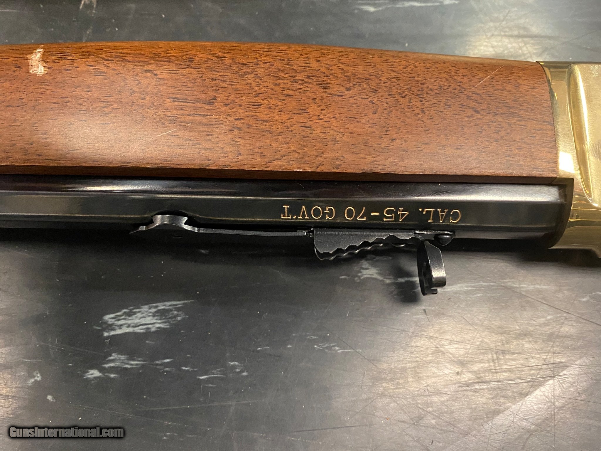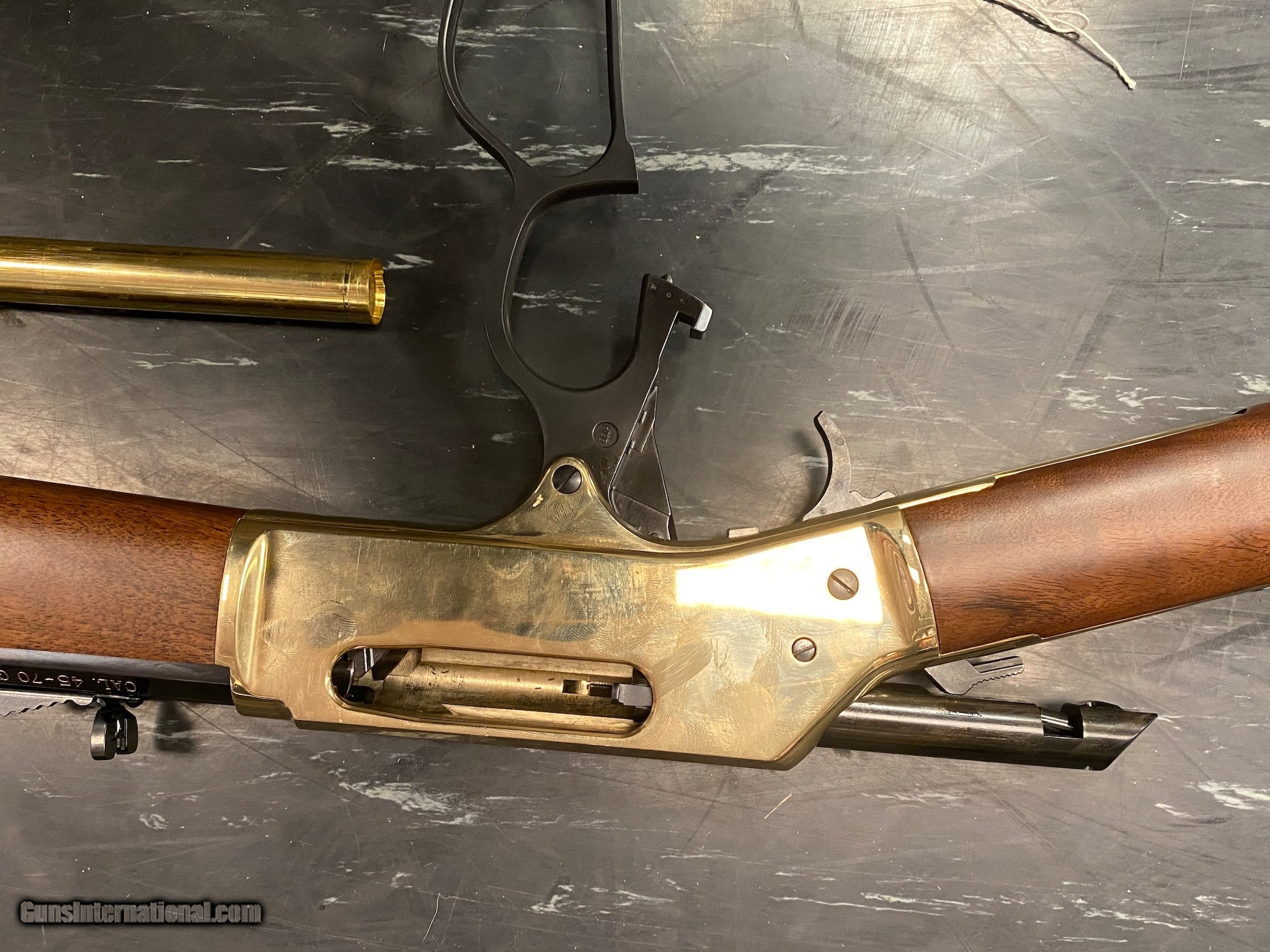 Description: Guns Listing ID: 696679 Henry Repeating Arms H010B, 45-70gov brass lever, wood stock does have some scuffs underneath the stock as well as the side of the barrel (pictures), holds 4 rounds in tube SOLD Manufacturer: HENRY Model: 45-70 BRASS LEVER Caliber Info: 45 70 GOV Condition: Used - Non-Certified Barrels: 21 BARREL Finish: WOOD |