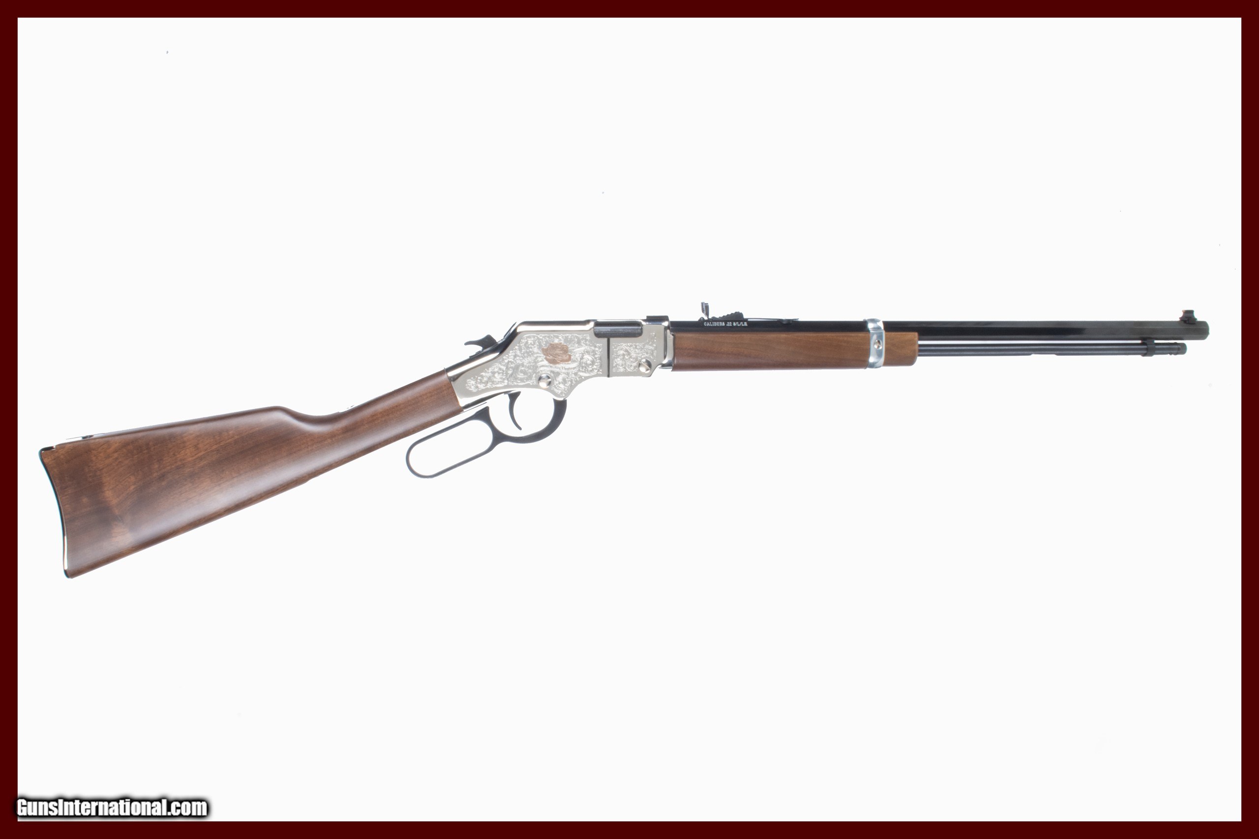 Description: Henry American Beauty - 20-inch blued octagonal barrel, lever, and tube with iron sights, stainless receiver, pad, and detail - fully engraved receiver walls with rose gold inlay 'roses' on left and right sides. Smooth walnut with steel pad. Action appears to be in fine working order with bright, sharply rifled bore. Firearm is used - like new. The NRA grading condition for this USED firearm is Excellent. We ship domestically in the United States. Additional shipping rates apply to Alaska and Hawaii. Dury’s Lifetime Warranty: All firearms purchased from Dury’s Gun Shop, NEW or USED, are covered by a lifetime warranty. We will repair or replace, at our discretion, any firearm purchased from Dury’s Gun Shop, Inc. for as long as it is owned by the purchaser. This warranty is not transferable. WE BUY GUNS! NO COLLECTION TOO BIG OR SMALL FOR OUR GUNS INTERNATIONAL CUSTOMERS ALL OF OUR FIREARMS CAN BE PURCHASED DIRECTLY FROM OUR DURY’S GUNS SITE ! SOLD Manufacturer: Henry Model: Golden Boy American Beauty Caliber Info: 22 Long Rifle Barrels: 20inches |